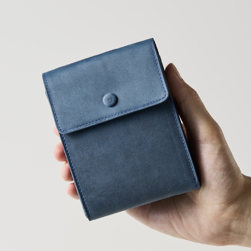 Detail 01お洒落なフォルムの3つ折り財布。ボタンで留めるタイプのデザインで、ホールド感があります。