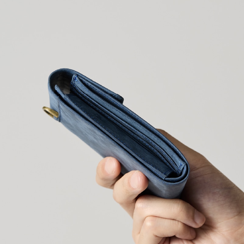 Detail 02薄めに設計していますので、持ち運びにちょうど良いサイズ。Dカン装備で、ウォレットチェーンを付けられます。