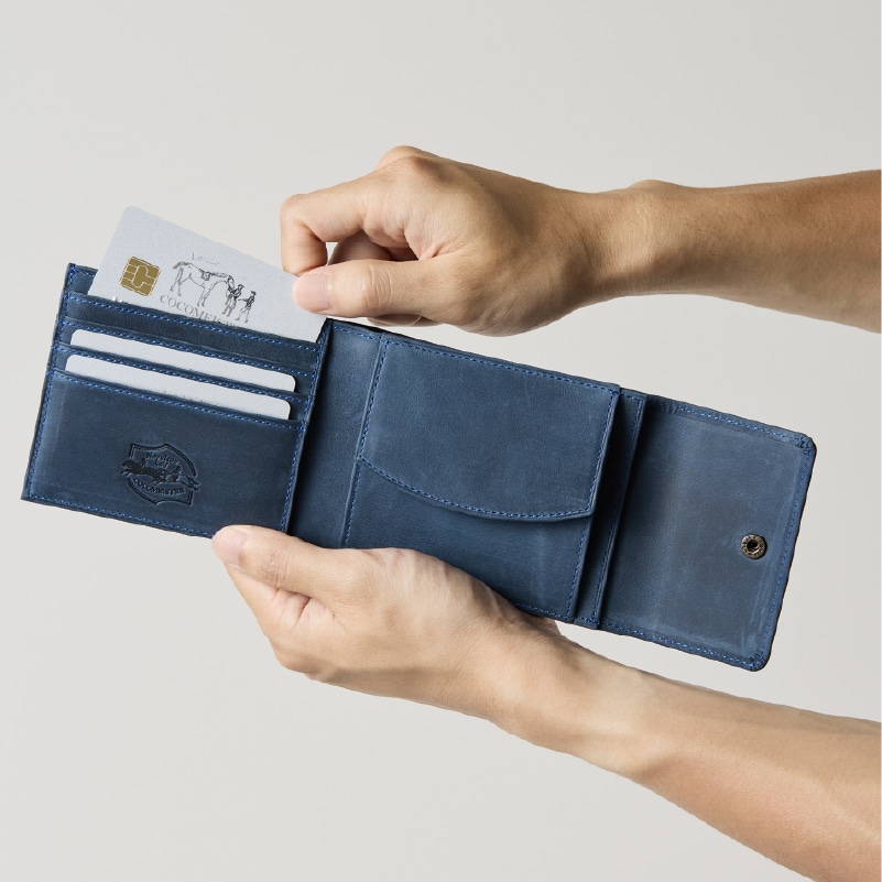 Detail 04左側にカード入れ、右側に小銭入れを装備しています。革が柔らかく取り出しやすい。