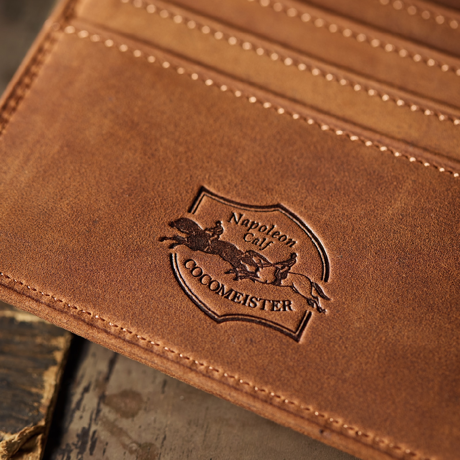 オイルが多分に含まれたヌバックレザーは、仕立てるには高い技術を必要とします。仮止めが効かない、型崩れし易いなど、様々な要因をクリアする為。日本でも老舗の財布職人たちが仕立てます。また、職人たちもナポレオンカーフを好んでおり、革の魅力を最大限に引き出しています。