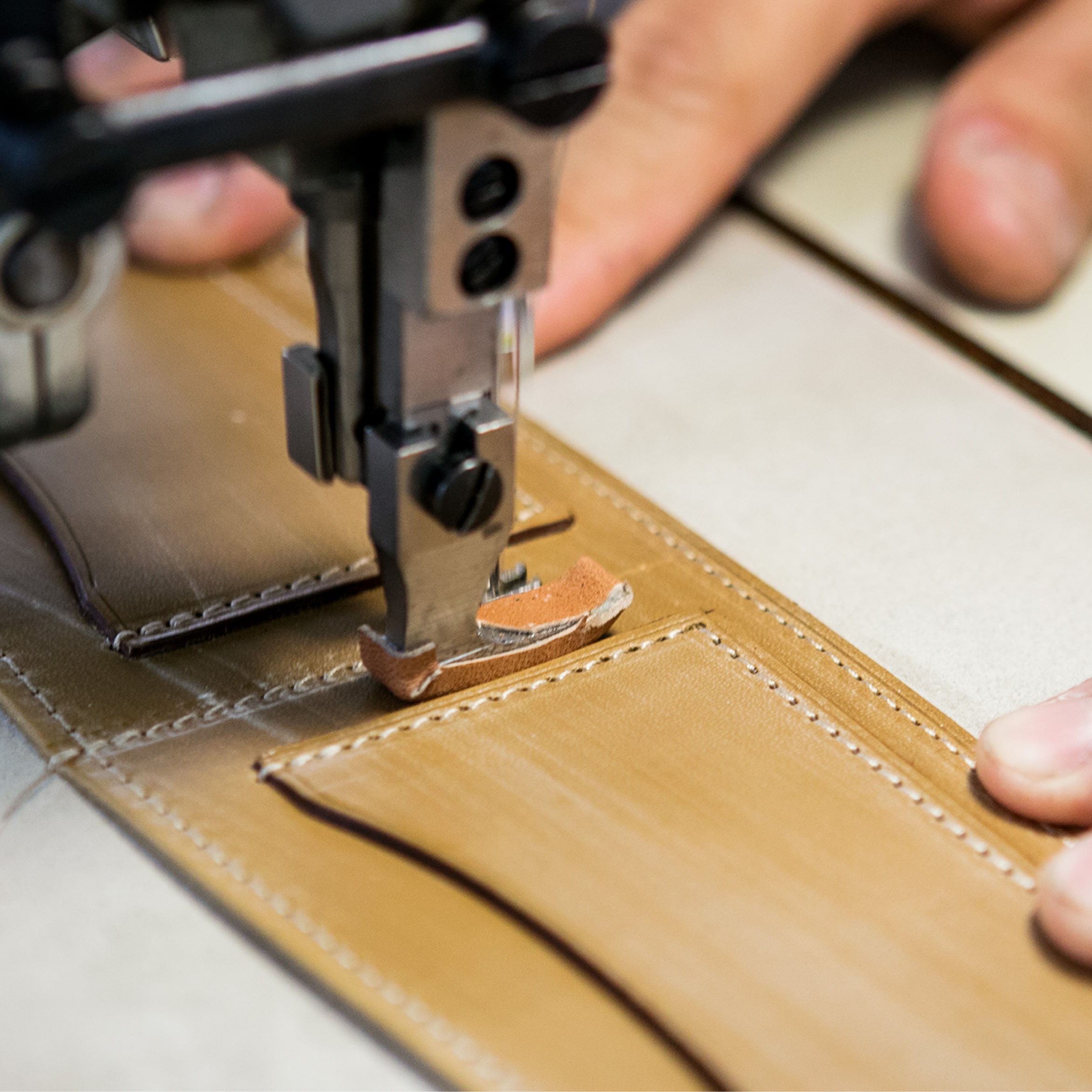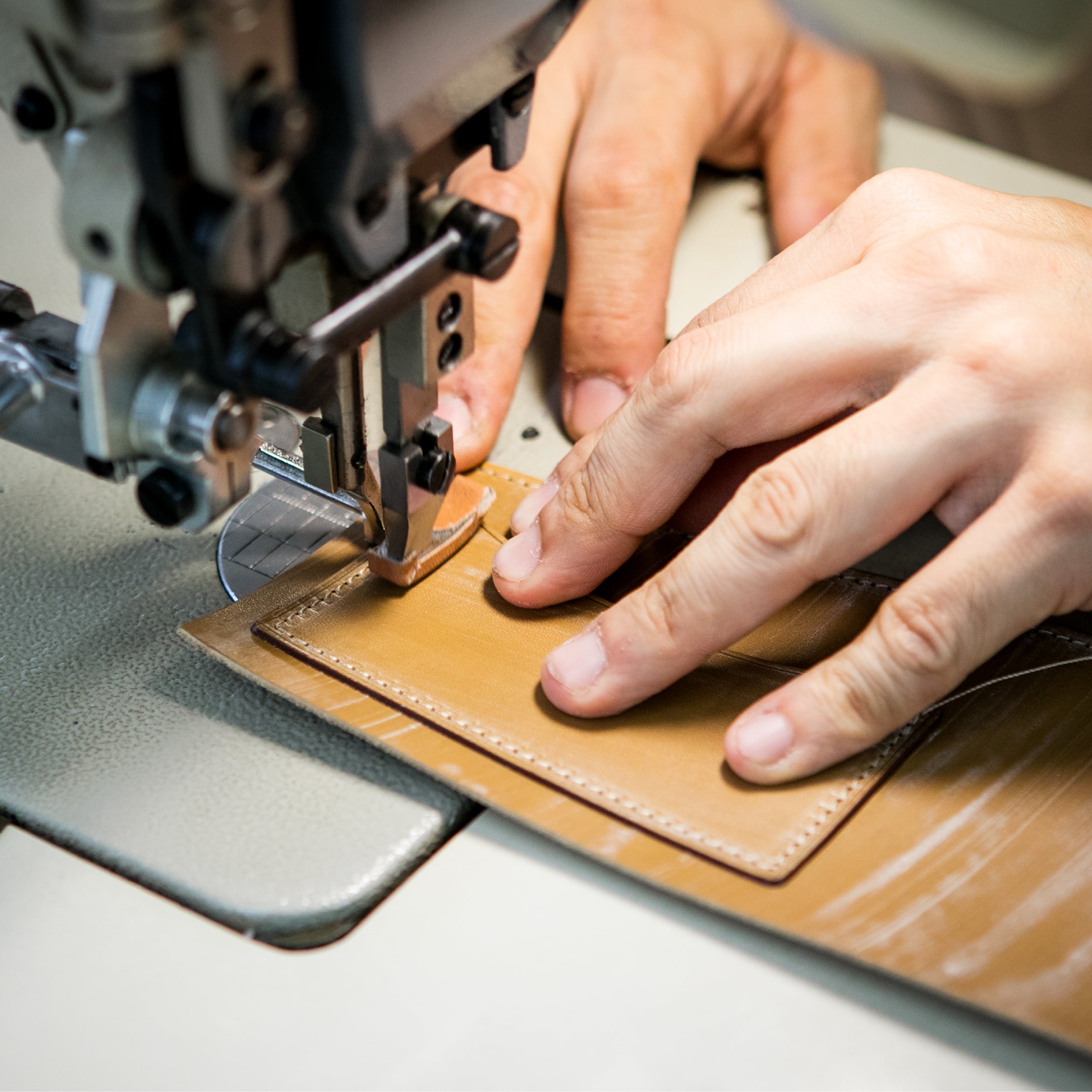 内装に使用する素材は機能性も求めたいが、贅沢感も感じたい。そんなわがままなオトコの要求に応える、極上の技術素材。本革と比べて、汚れに強く、軽量です。鞄の内装は豚革が一般的でしたが、ウルトラスエードが高級自動車に使われている事に着目し、革製品の内装という新しい用途を開拓しました。当初、東レ社の方がココマイスター店舗まで足を運び、製品の内装で使われているのを見て、開発の参考にされておりました。