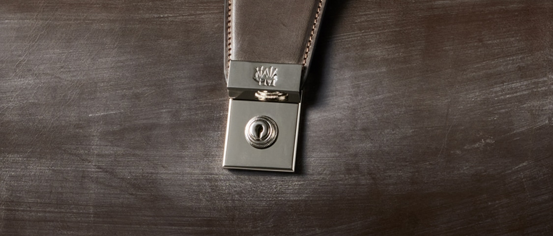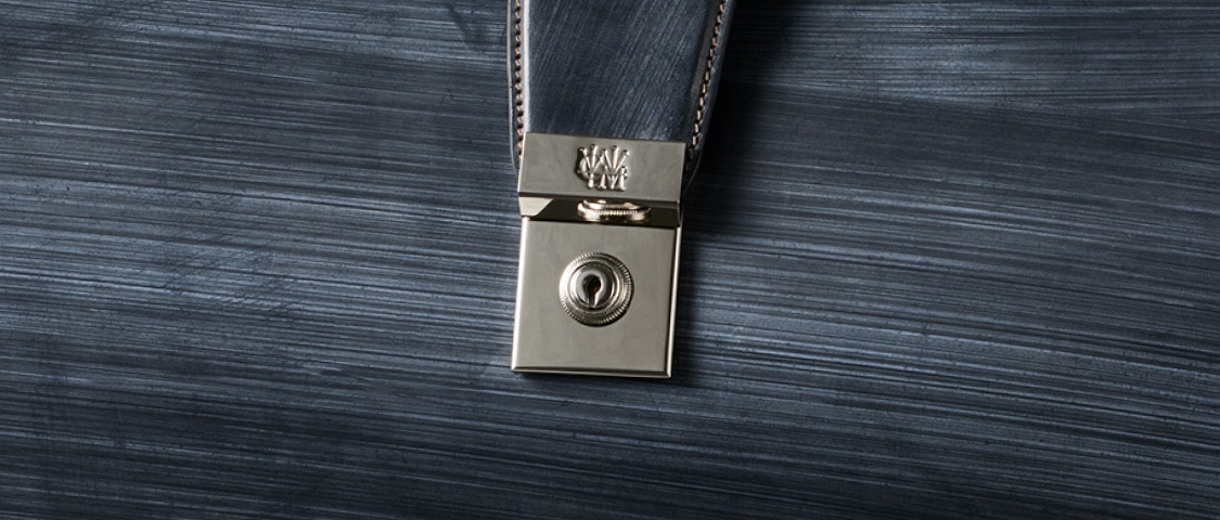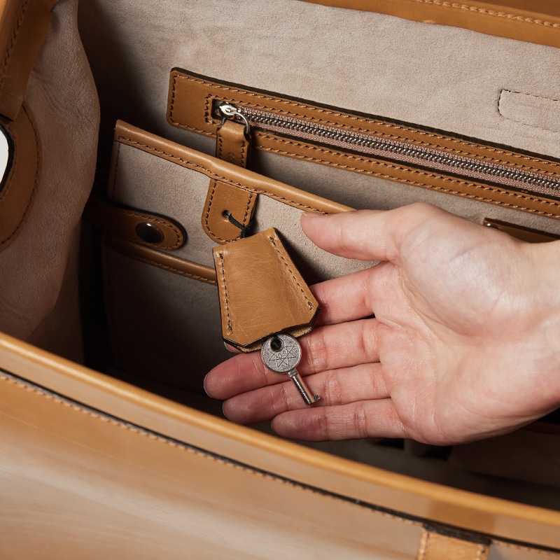 Detail 04錠前の鍵は革のケースに収納しており、内装に紐で取り付けられています。