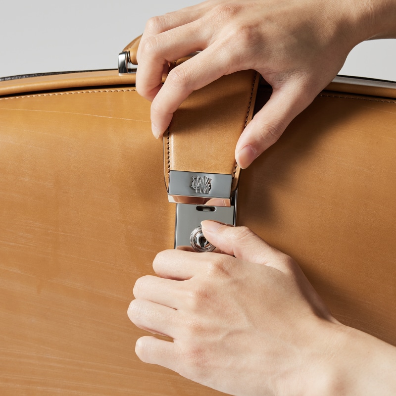 Detail 08持ち手はハードな作りになっており、ダレスバッグのフォルムを崩しません。
