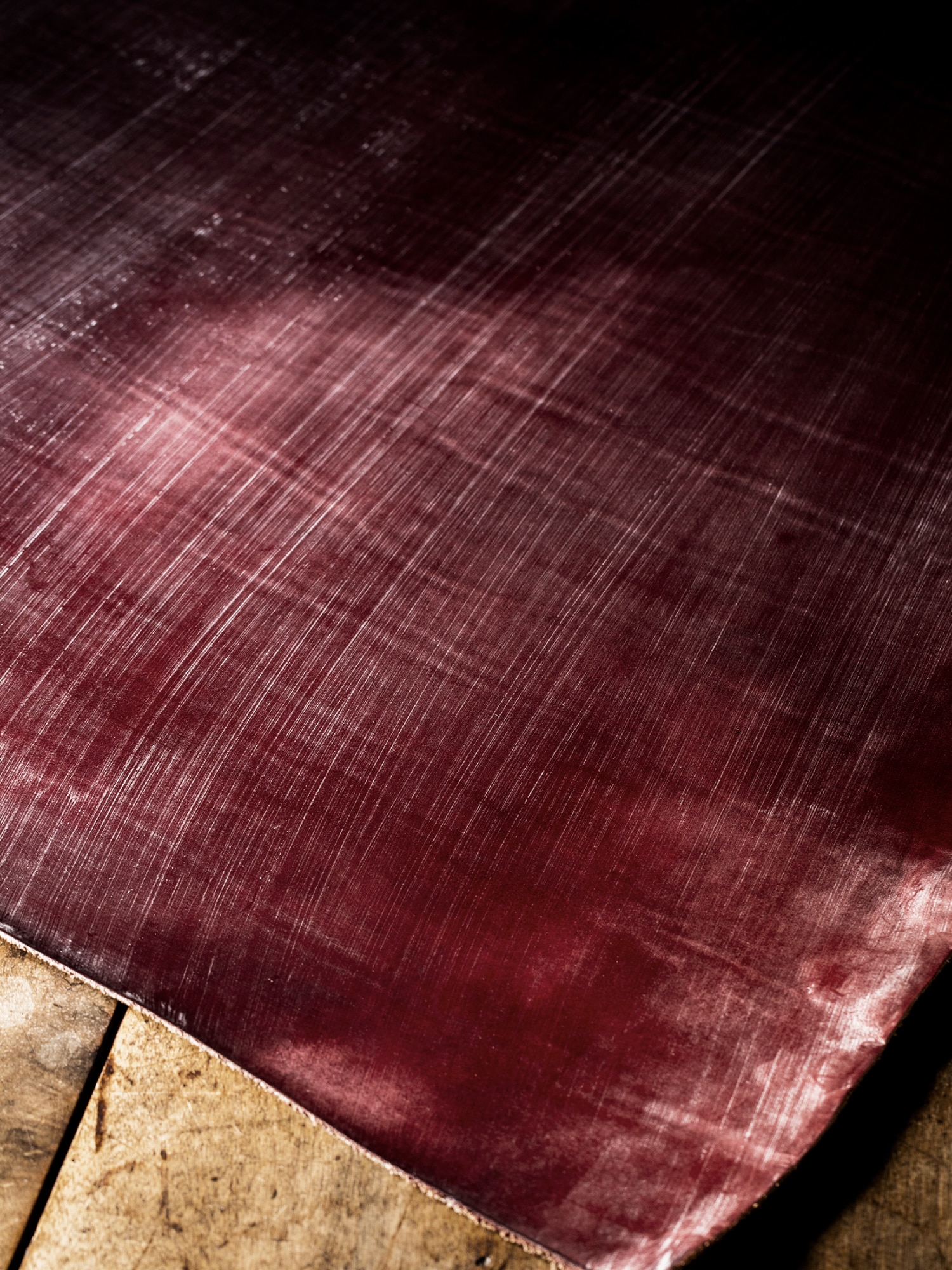 ボルドーの深い色味が特徴的。赤ワインの透き通る濃厚感をレザーで実現しています。ワイン樽と同じく、オークの木と混ぜて染色しており、とても深く芳醇な赤ワイン色を堪能出来ます。(差し色がホワイトベージュ)