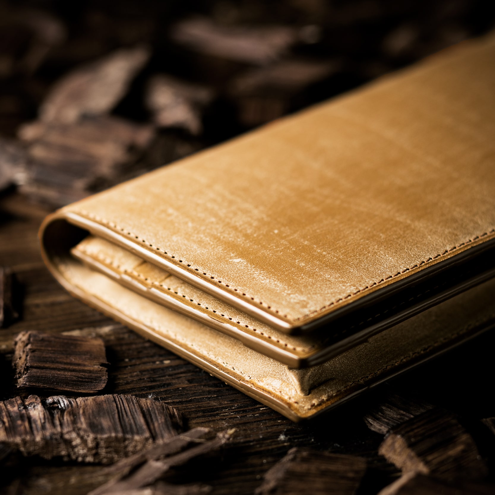 紀元前の製法をそのまま再現したオークバークシリーズのクラシカル長財布。重厚さとヴィンテージが入り混じり、独自の世界観を醸し出しています。紀元前にタイムスリップするように、当時のレザーを堪能できます。