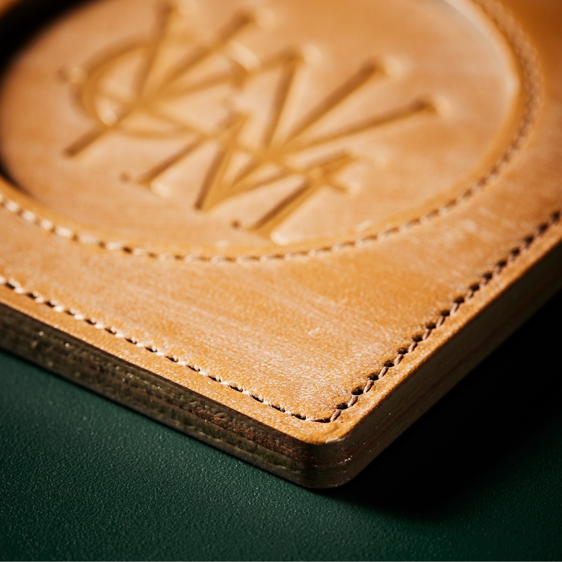 Detail 03オークバークレザーを複数枚重ねることで仕立てています。財布小物を製作する職人が仕立てていますので、いつものオークバークコレクションのクオリティをインテリアでお楽しみいただけます。