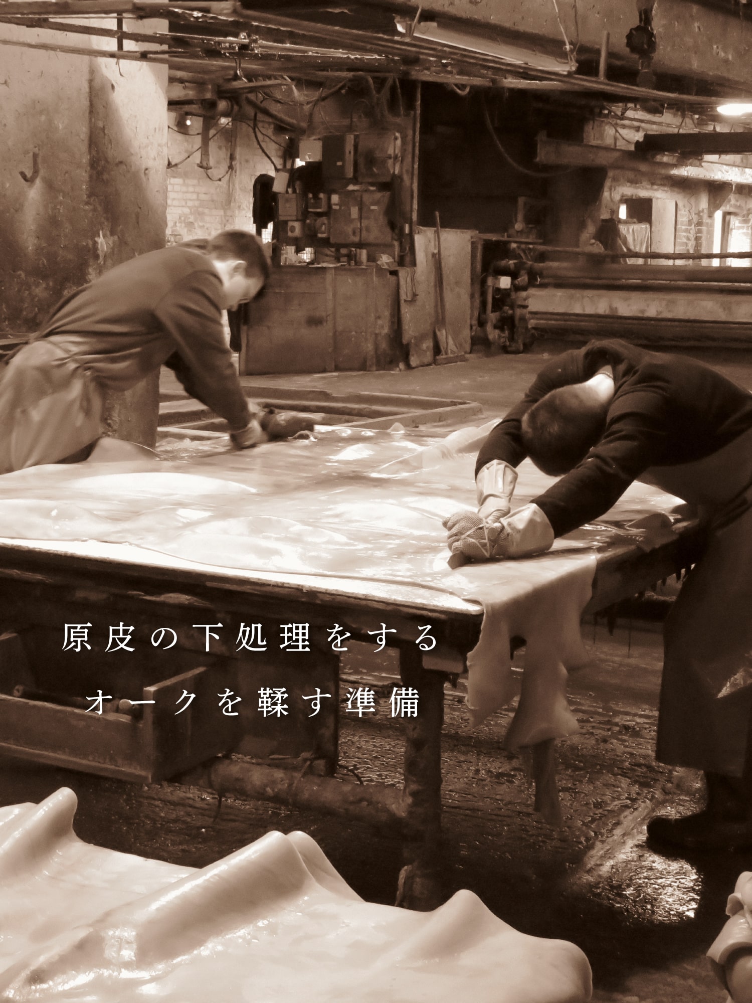 英国タンナー近くにある保護されている区域で伐採したオークを使用し、薬品を一切使わずに革を製造するオークバーク。オークバークは製作日数は、365日と1日かけると言う鉄の掟が英国で生まれました。それは樹木の保護の為と言い伝えられています、かつて英国では、鉄の掟を破りし者は両手首を切り落とされるという、厳しい罰が設けられていました。オーク(樹木)そのものを保護し、品質を保ち続けます。(現在このタンナーは英国政府の管理下)