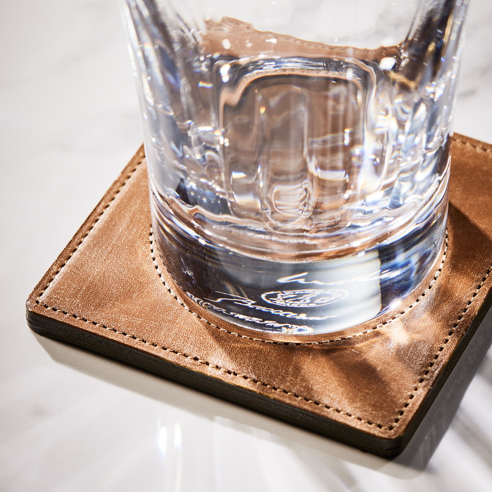*円の直径が6cmですので、グラス底面の大きさをご確認ください。また革には防水加工などを施していませんので、グラスの水滴でシミになる場合がございます。革の風合いとしてお楽しみください。