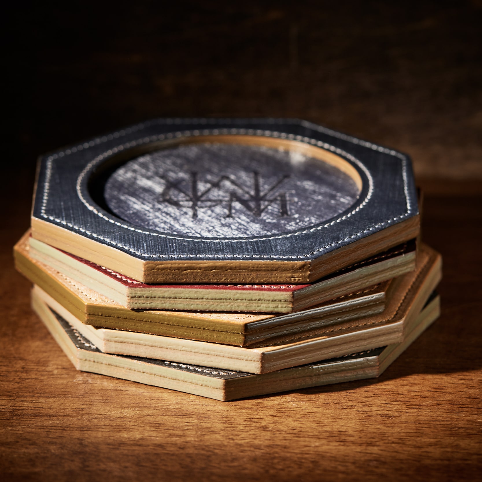 紀元前の製法をそのまま再現したオークバークシリーズのウイスキーのロックグラスを置けるコースター。重厚さとヴィンテージが入り混じり、独自の世界観を醸し出しています。紀元前にタイムスリップするように、当時のレザーを堪能できます。