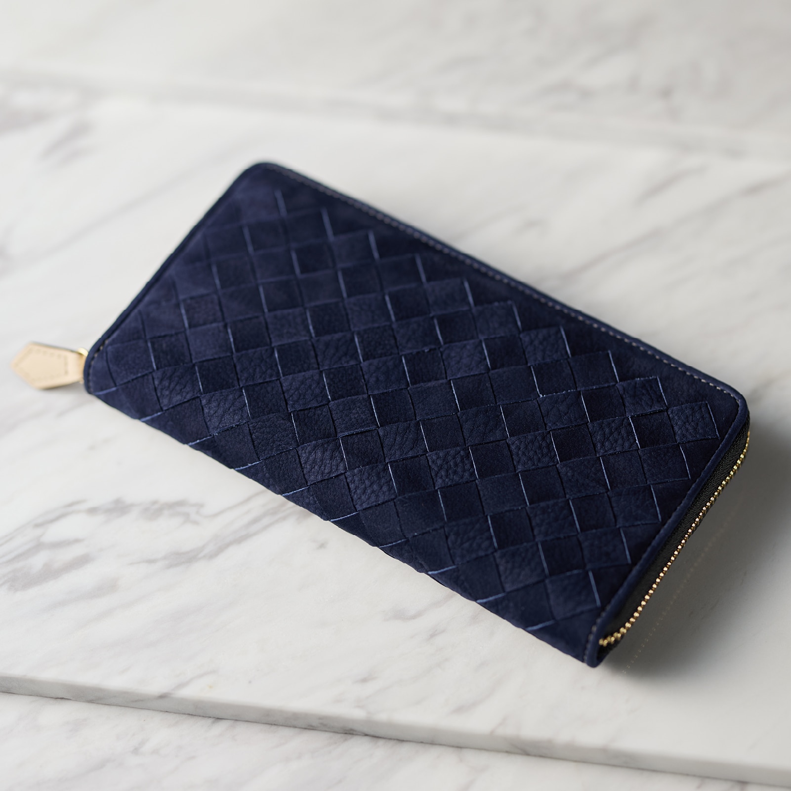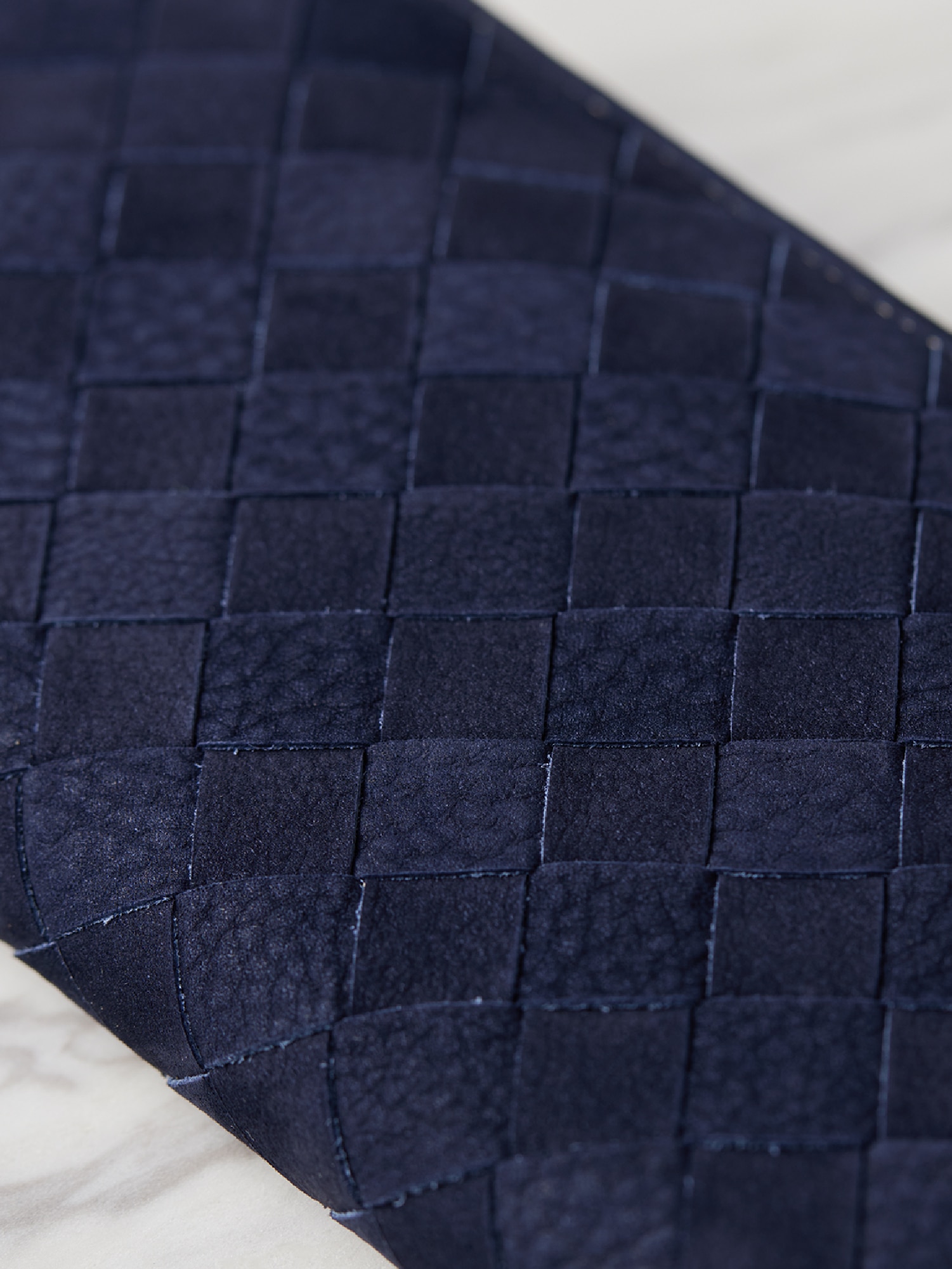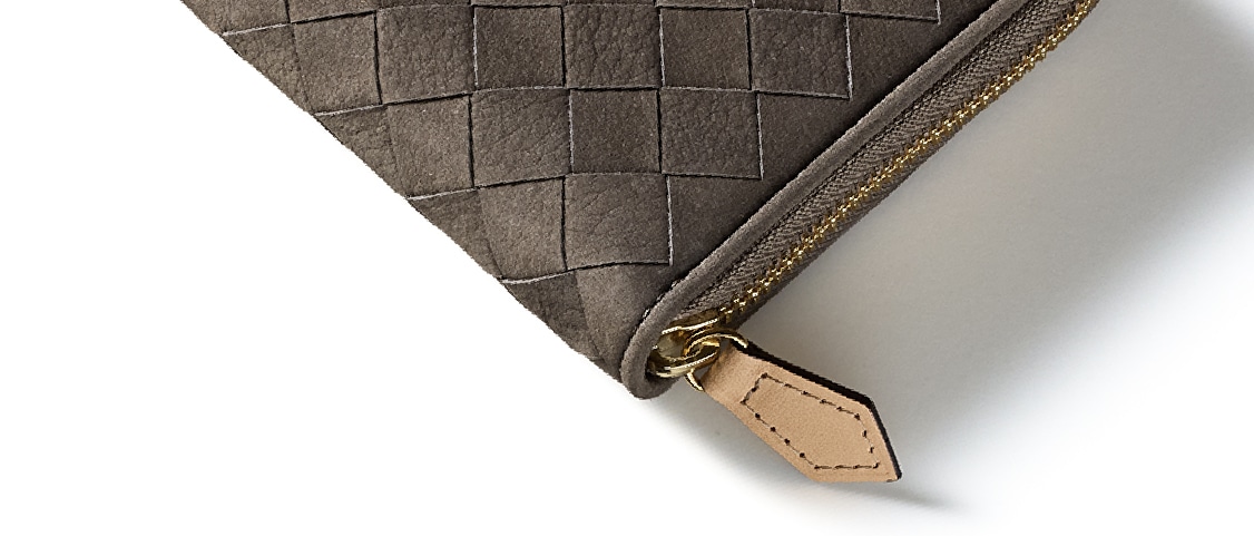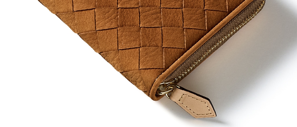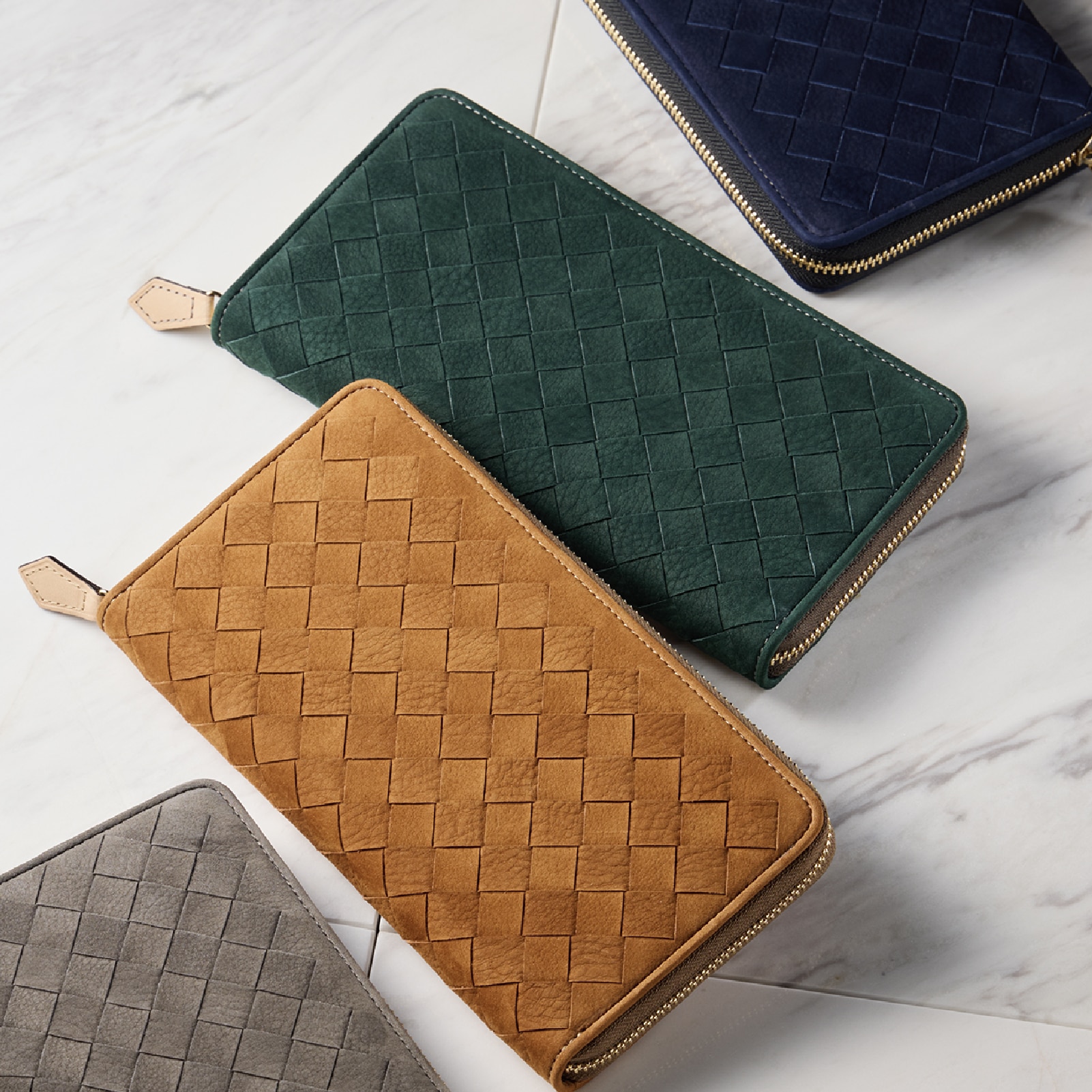 スペイン原皮の最高級ヌバックを丁寧に編み上げ、日本の熟練職人が一点ずつ仕立てています。編み込みが生み出す陰影と起毛の柔らかさが融合し、手に吸い付くような質感と重厚感を楽しめます。