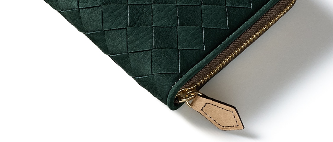 引き手にヌメ・ヴォヤージュを採用し、引き手のエイジングを楽しめ、ワンポイントでお洒落な印象が気分を高めてくれます。