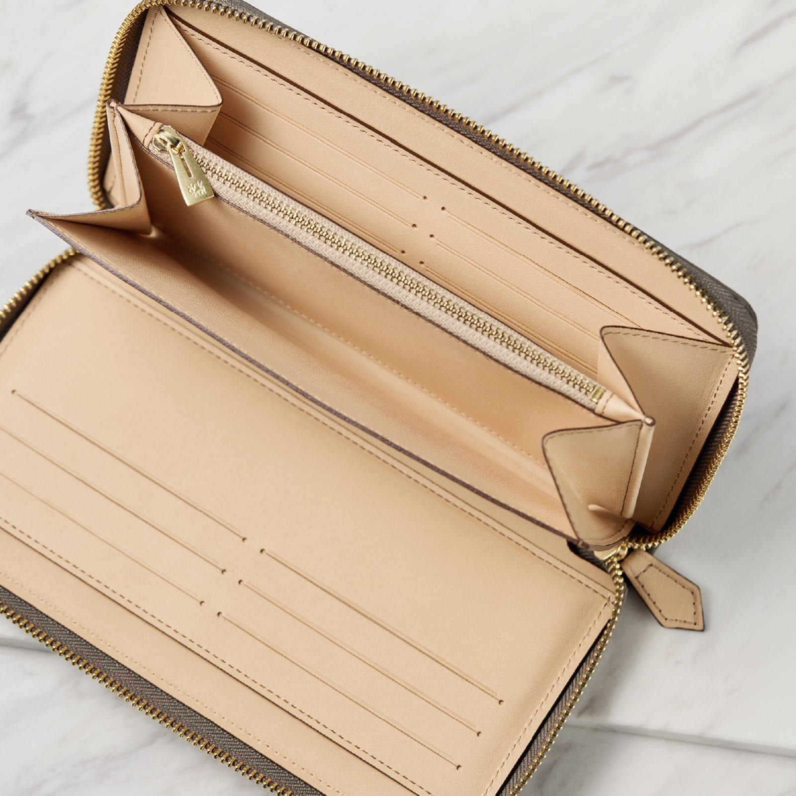 フランスの名門タンナー製でラグジュアリーブランドも使用するヌメ革「ヌメ・ヴォヤージュ」を内装に。ナチュラルな風合いと美しい経年変化が魅力で、使うほどに深みと艶が増し、唯一無二の表情へと育っていきます。