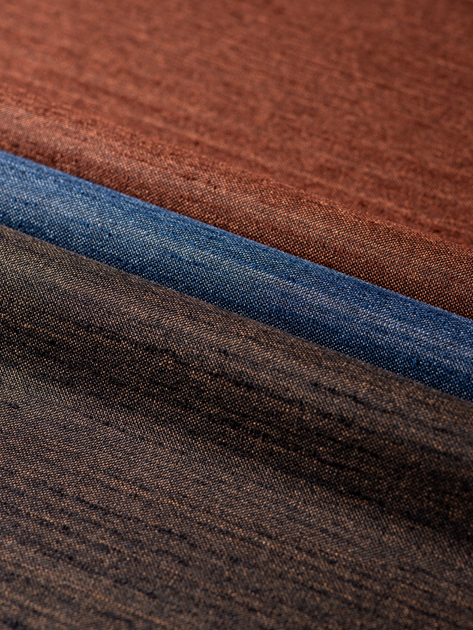 赤ワインの様な渋く、美しい色味を生地で表現しています。何色もの糸を重ねて織り込んだ、グラデーションの様な風合いが魅力です。