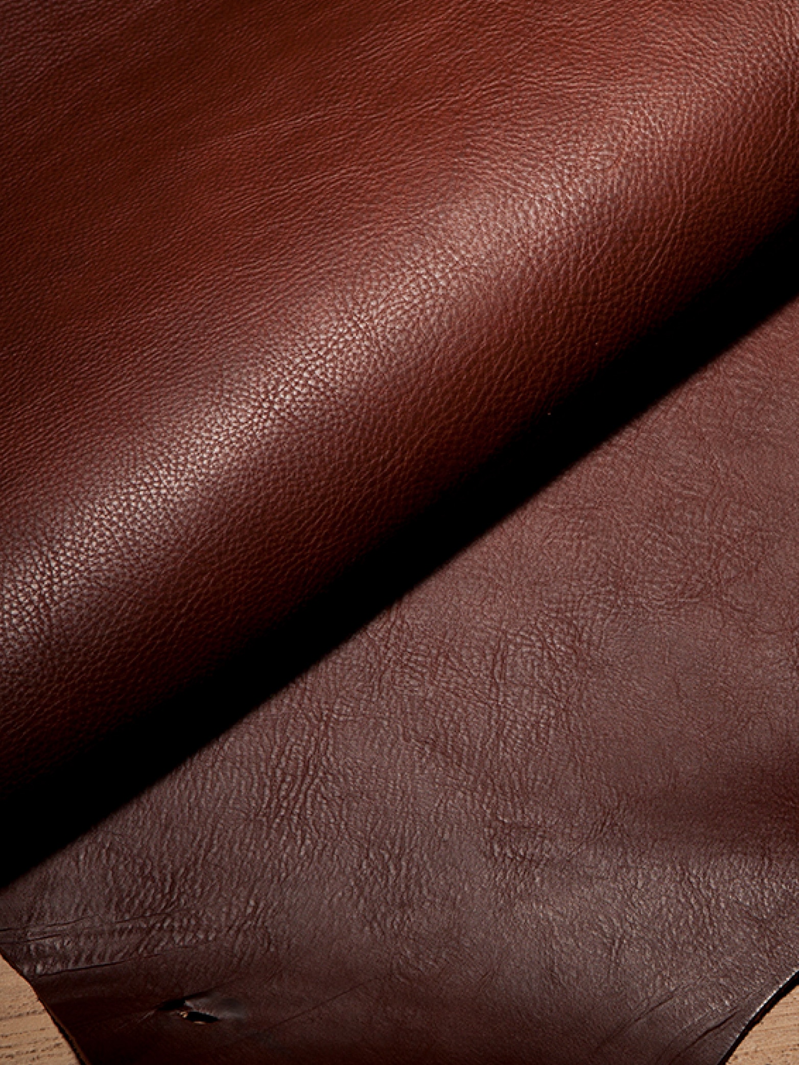 イタリアの古典的な製法であるバケッタ製法により作られた皮革「マットーネ」です。革らしい表情を残す製法であるタンニン鞣しと呼ばれる製法により、経年変化を楽しめる素材は作られます。