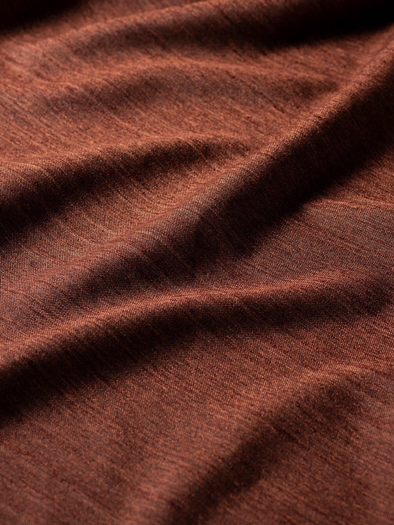 赤ワインの様な渋く、美しい色味を生地で表現しています。何色もの糸を重ねて織り込んだ、グラデーションの様な風合いが魅力です。