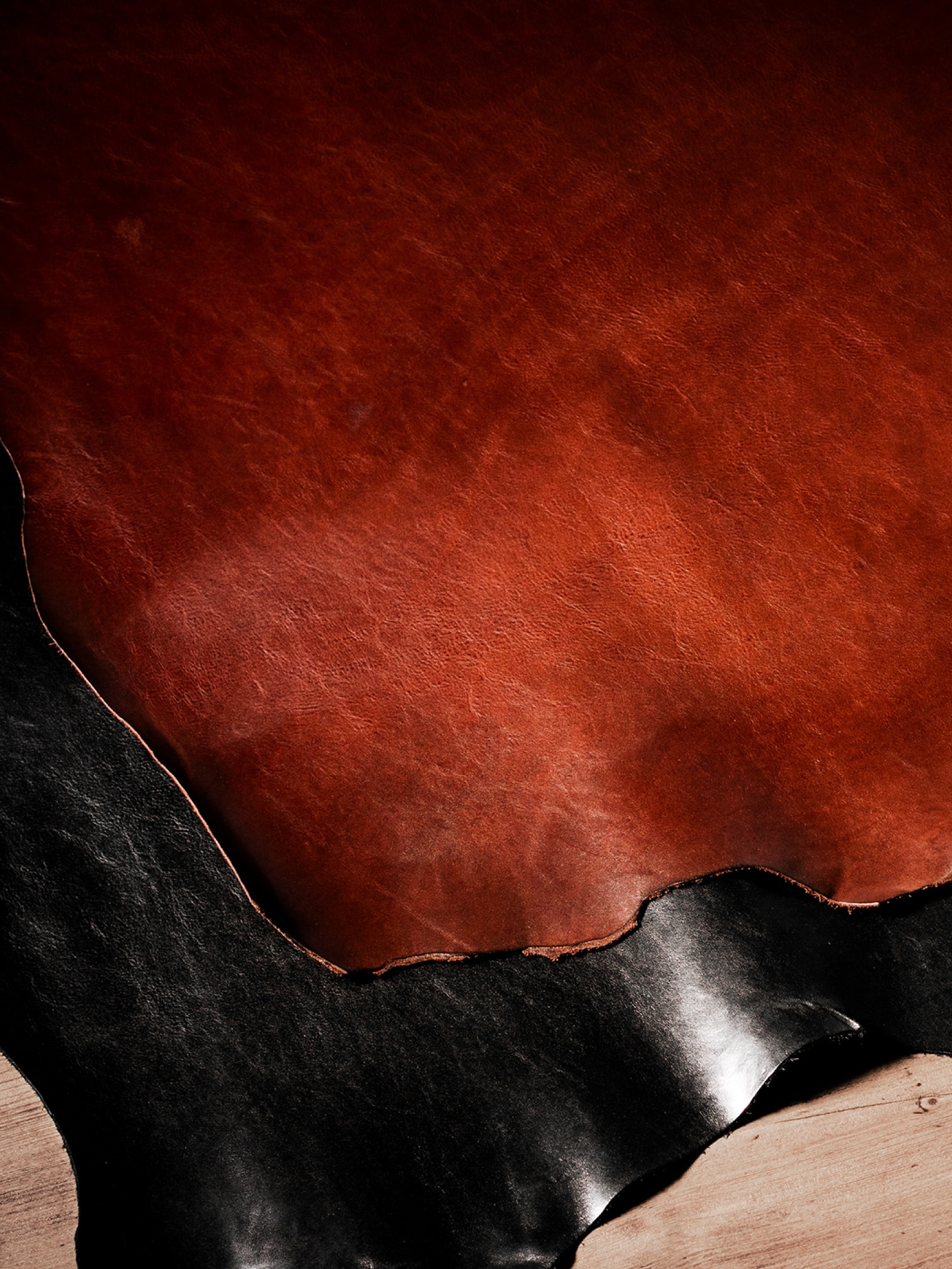 ハイブリッドな製法を採用したバランスのとれたレザーです。タンニン鞣しと呼ばれる植物の渋100%で鞣す方法と、化学的に鞣す方法を併せ持ったコンビ鞣しを行い、更にこれもハイブリッドに染色と顔料の吹き付けによる色付けを行っています。とてもバランスの取れた製法により、美しい風合いを表現しています。