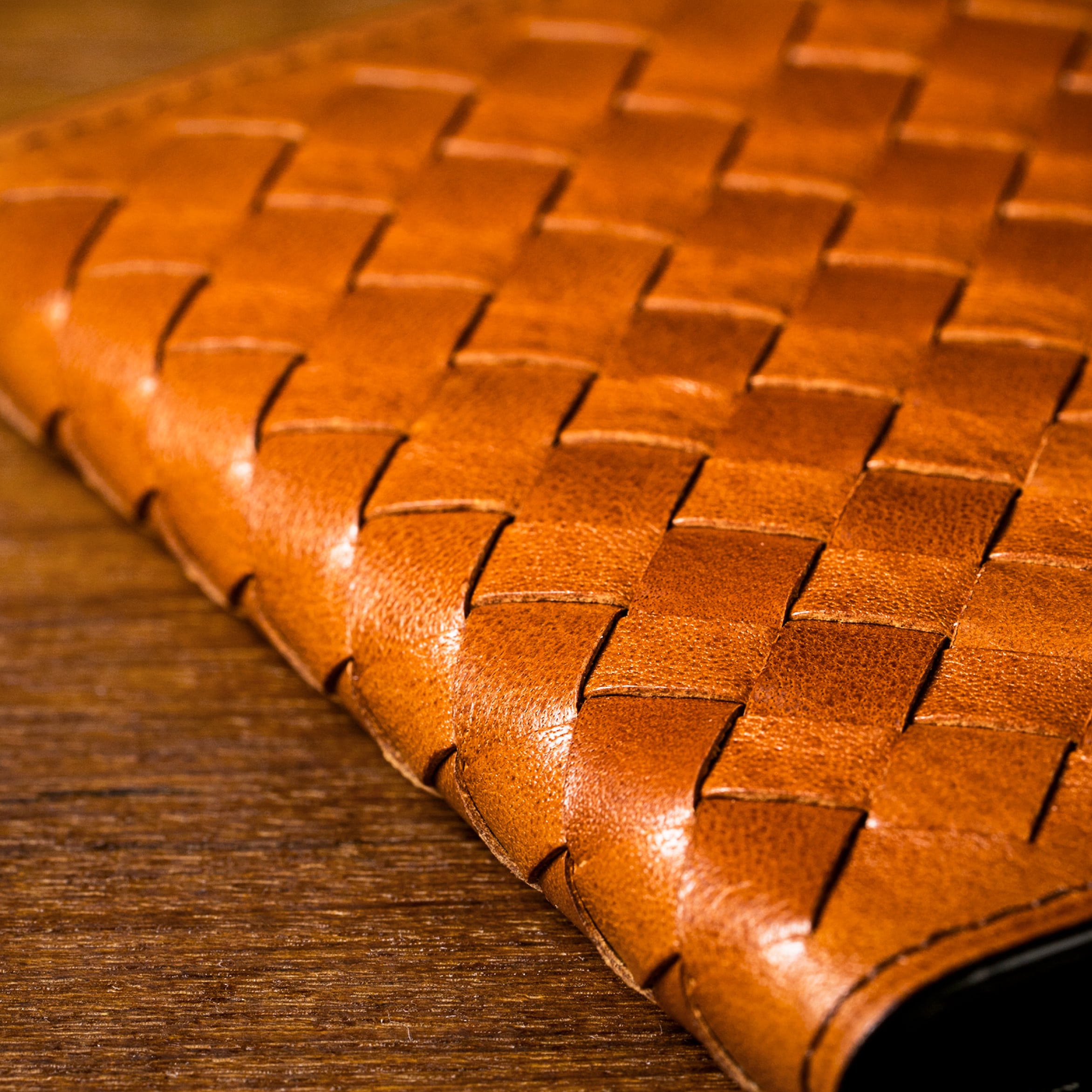 そんな伝統製法により作られたマットーネレザーを丁寧に編み込みました。経年変化であるエイジングを楽しめる皮革を編み込むことで、グラデーションの様な経年変化を楽しめるのが最大の魅力です。