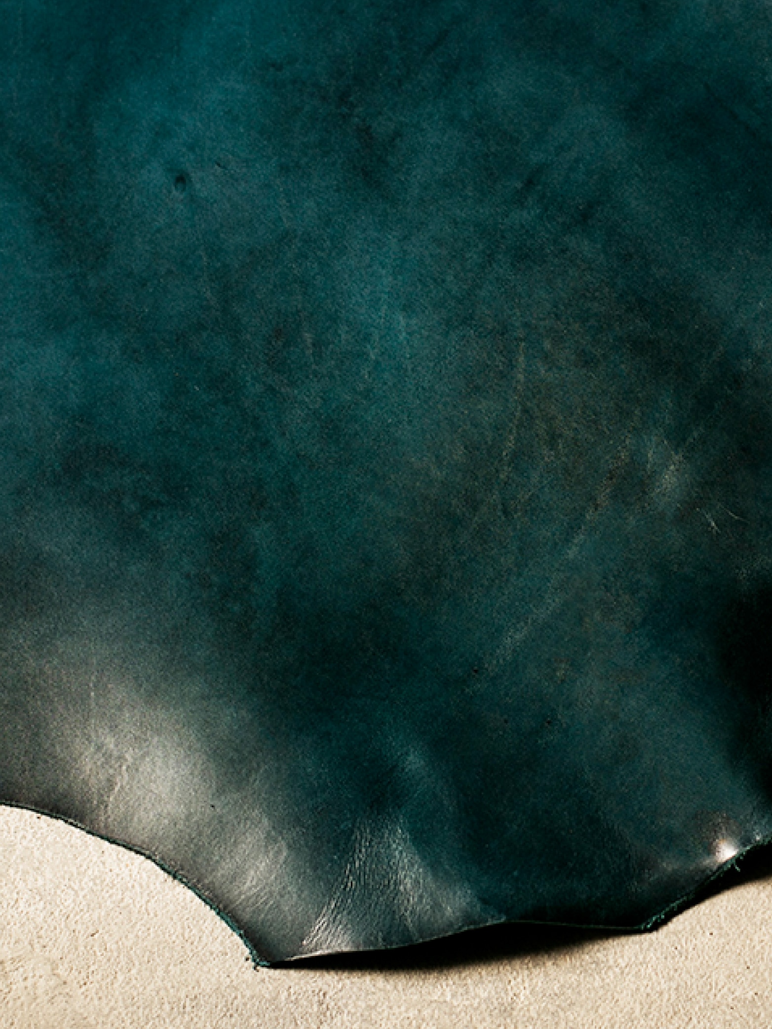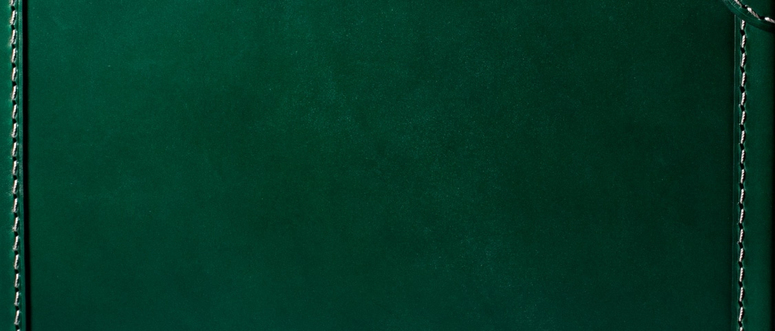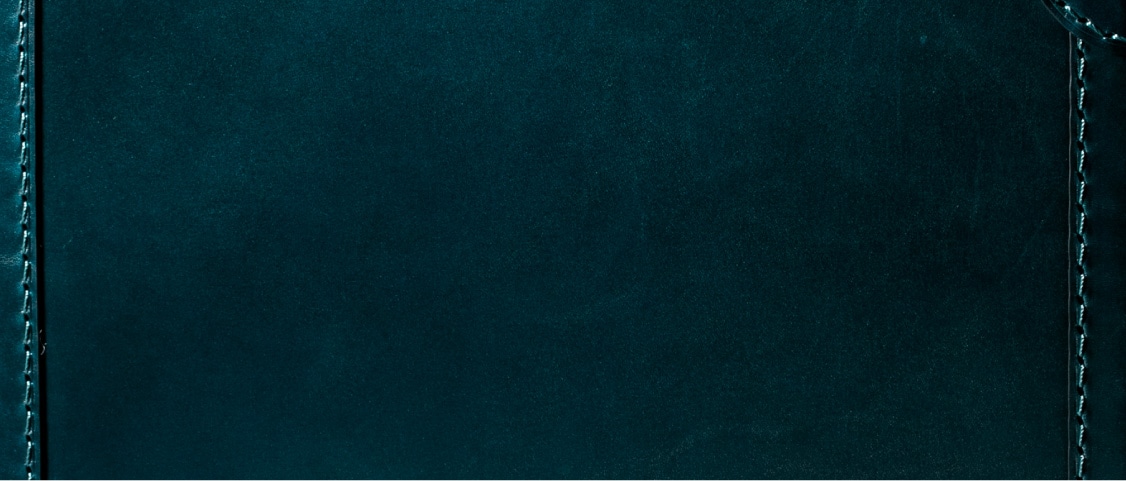地中海の色味をイメージした発色が美しいシーアンビション色です。この革独自のグリーンは深みがあり、上品で唯一無二の色味を見せてくれます。