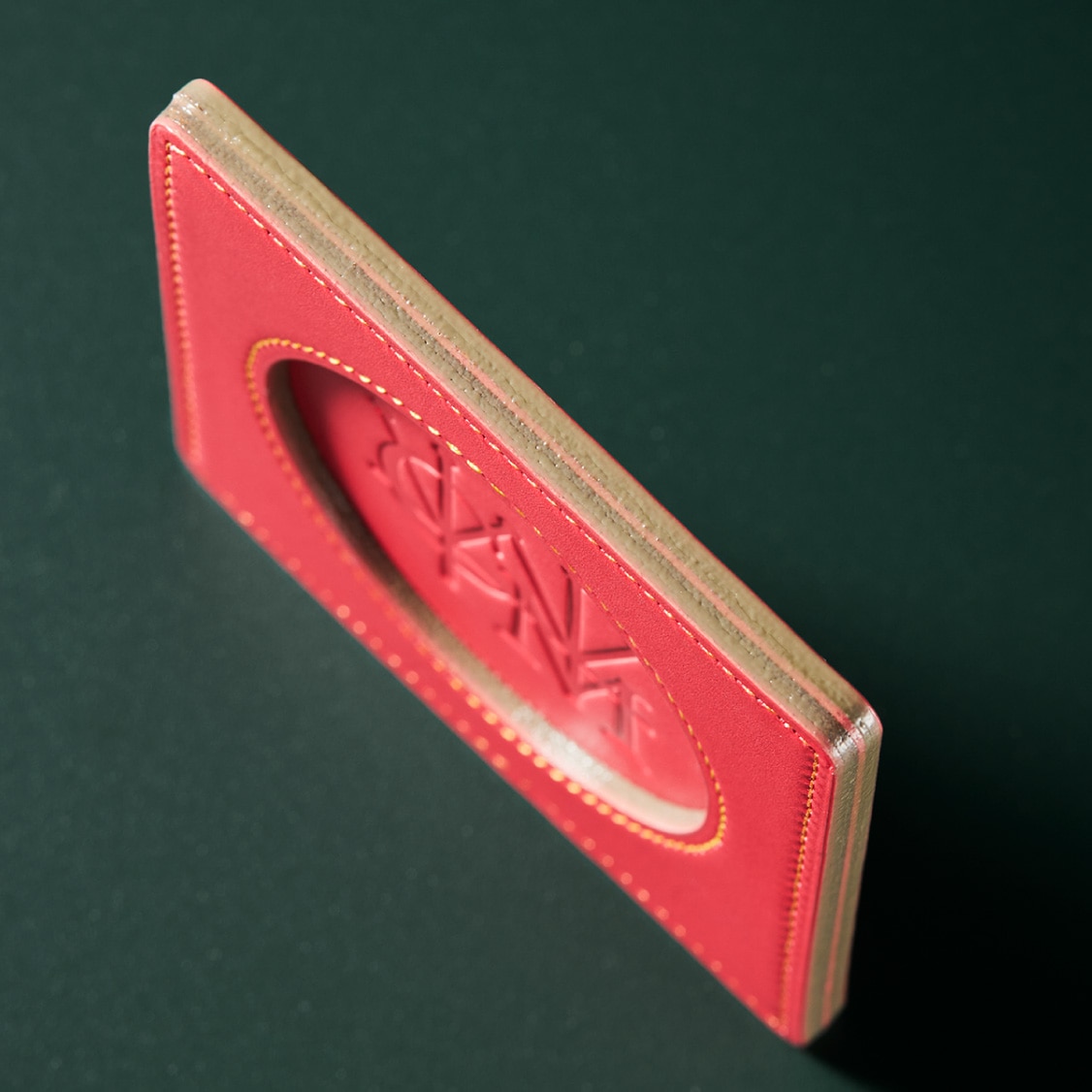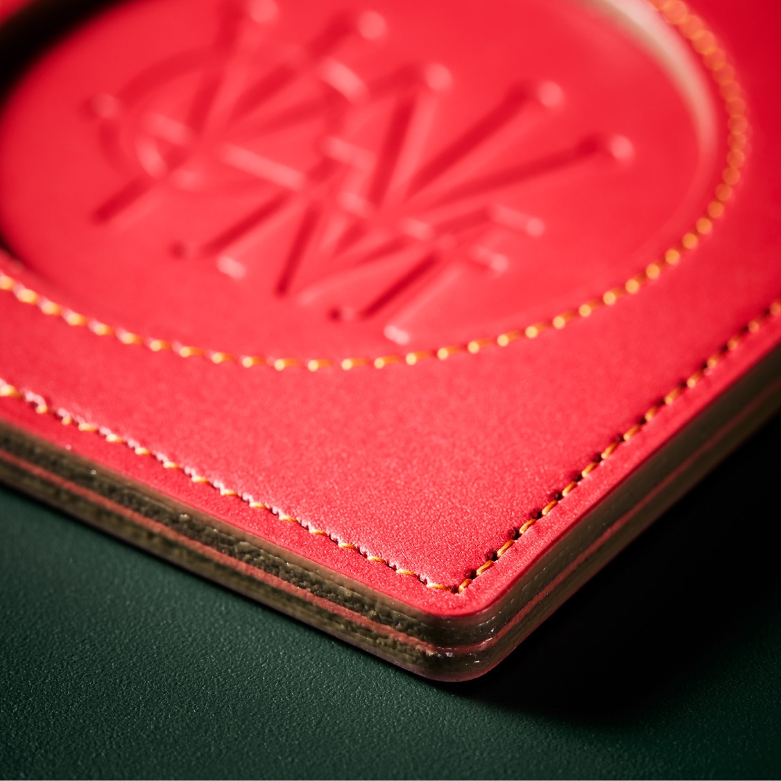 Detail 03革を重ねることで仕立てています。財布小物を製作する職人が仕立てていますので、重厚感もあり、上質なコースターを味わえます。