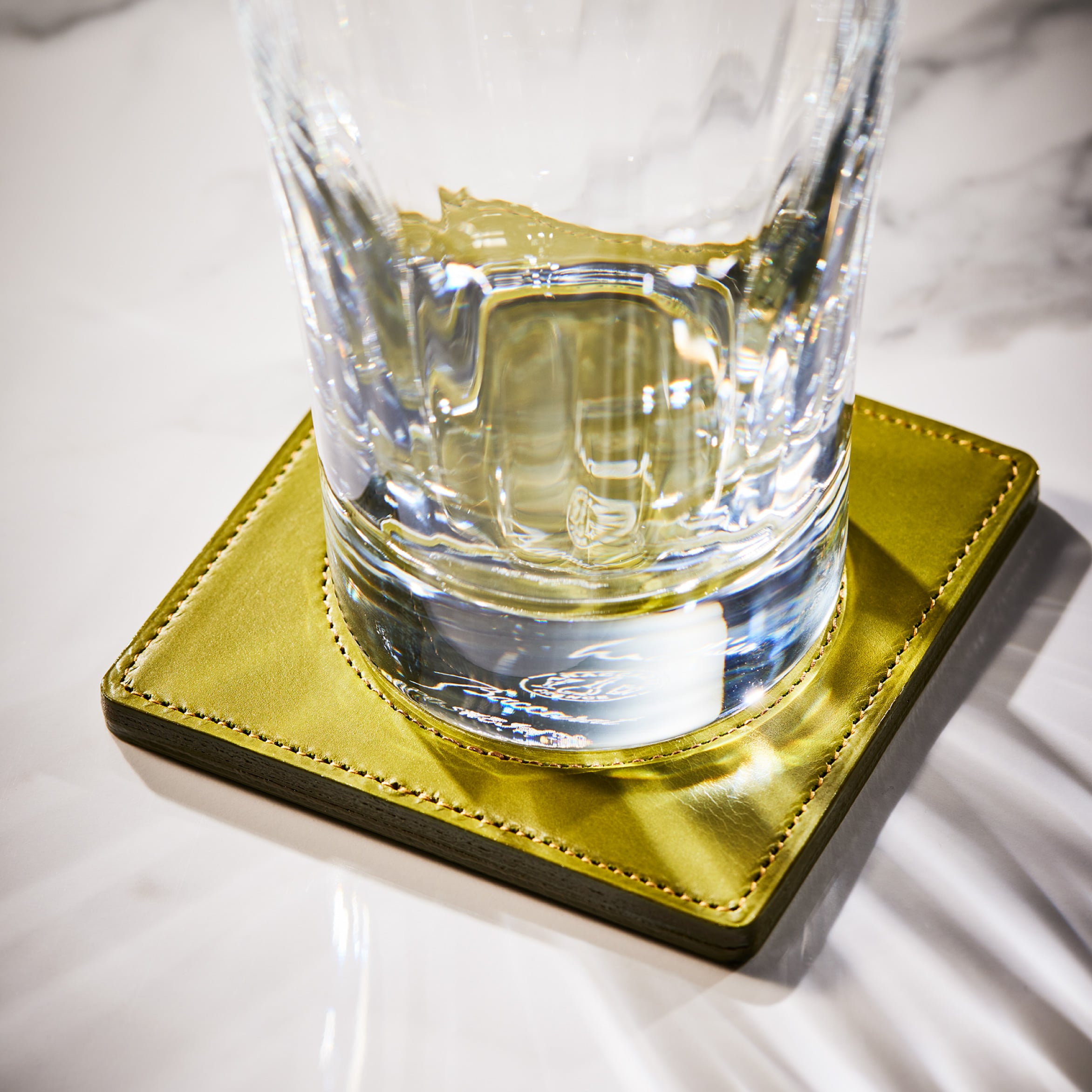 サンタクローチェレザーとオークバークで製作されたコースターです。硬質な質感なのに、革らしい柔軟性を感じますので、手に馴染みが良く、グラスを傷つけることなく、コースターとして利用できます。インテリアとしてもお洒落なコースターは、リビング、ダイニングを彩り、優雅な時間を演出してくれます。大切な時間をサポートするコースターです。