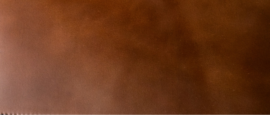 ナチュラルな仕上がりを見せるシェルコードバンです。自然の風合いを極限まで残すことで、革らしい質感と圧倒的な経年変化を見せくれます。このシェルコードバンは、初見では鈍い光沢を放ち、艶やかな表情は影を潜めています。この革は使うことで本領発揮、美しい艶と革らしい質感、深い色味を感じることができるのがとても魅力です。