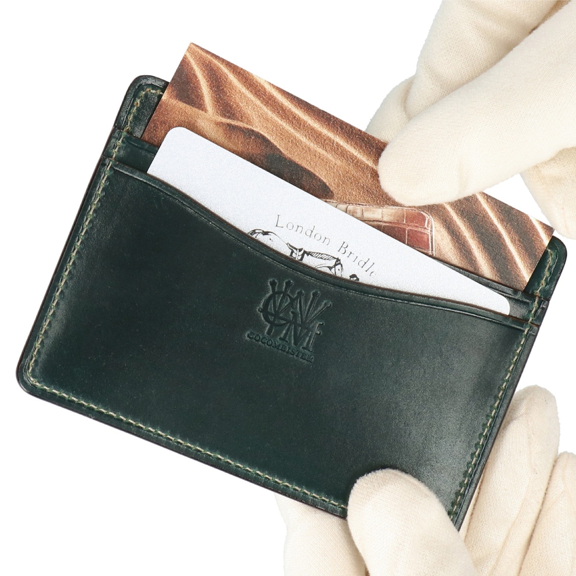 自然の風合いを極限まで残したシェルコードバンを使用したコレクションです。このシェルコードバンは米国産でホーウィン社という会社が製造した革です。経年変化がとても綺麗です。このIDカードケースはシェルコードバンで作られたとても贅沢なIDカードケースです。背面にはフリーポケットが付いています。