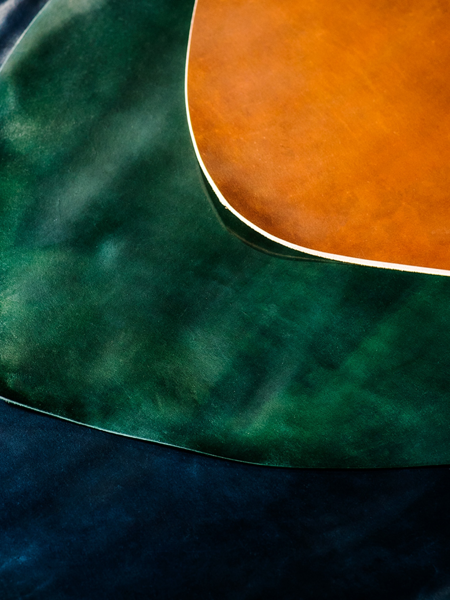 シェルコードバンを生み出す米国ホーウィン社は、100年以上の歴史を誇る伝統的なタンナーです。植物タンニンを使用して鞣すことにより、革本来の風合いを極限まで生かす様に製作されています。オイルも多分に入っており、それにより経年変化が美しく、変化するコードバンとして、独自の地位を築いています。最初はマットな風合いですが、使い込むことで光沢が出てくるのが特徴です。