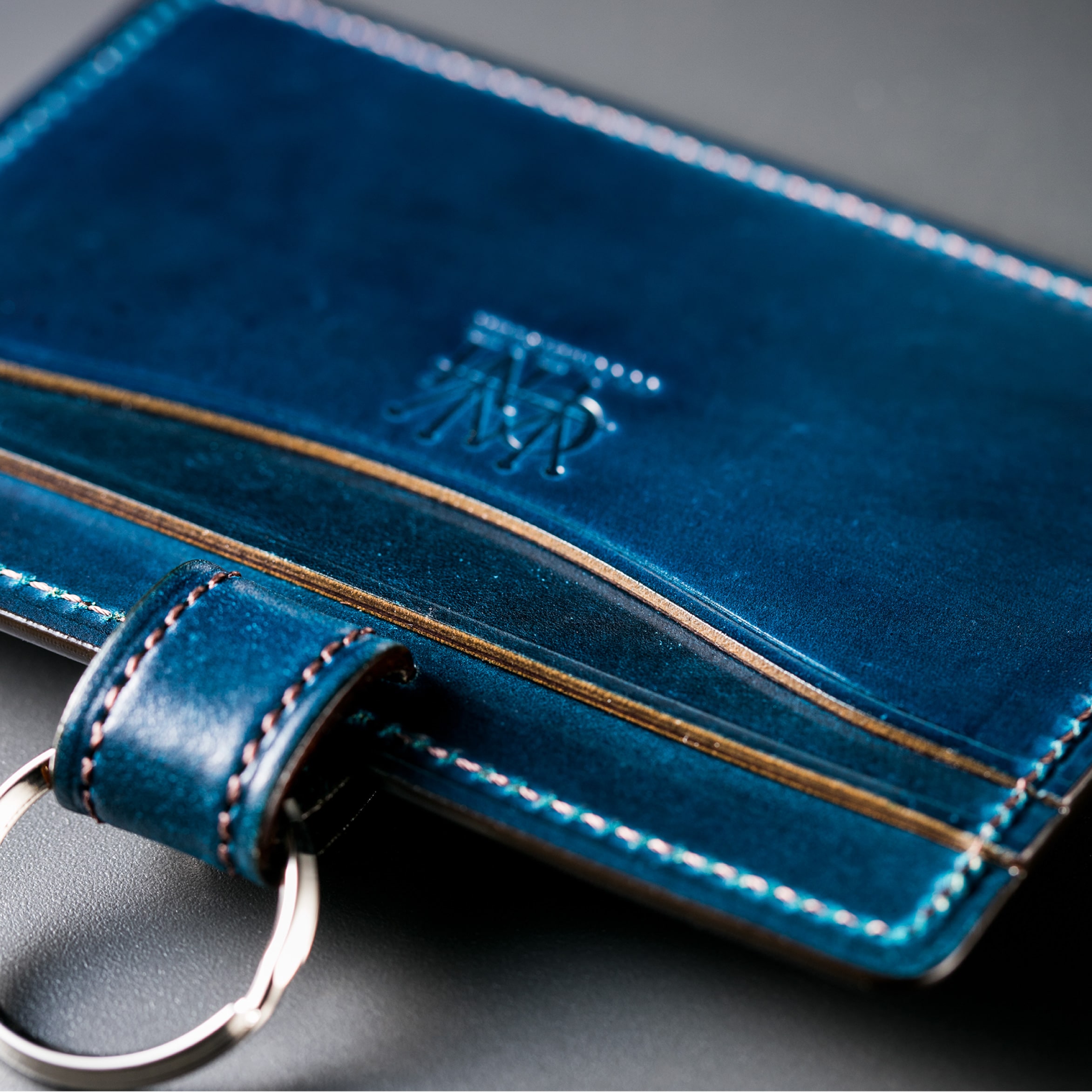 深みのある濃いネイビーです。シェルコードバン独特の鈍く輝くような風合いが、ネイビー色とマッチしており格好よく魅せてくれます。