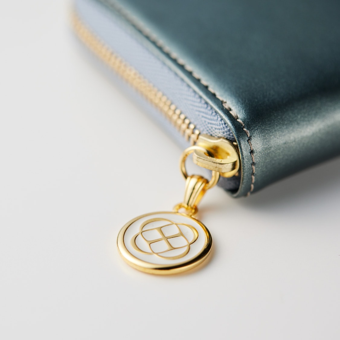 イタリア産のラムエナメルが上品な印象を与えてくれるラウンドジップ長財布です。プレートとチャームはカラーによって、ネイビーとホワイトが採用されています。全体的にしっかりとした作りが特徴で、光沢がありますが、上品に魅せてくれます。