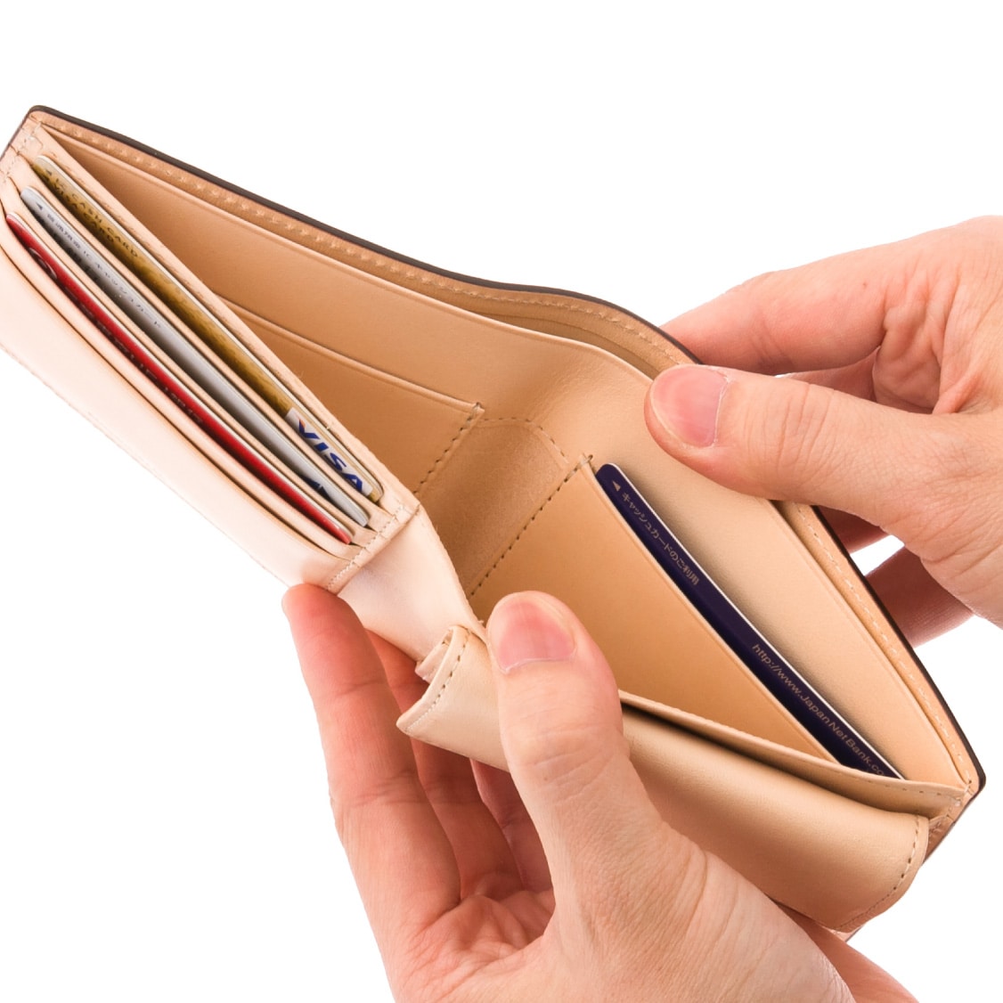 Detail 04 Detail 04小銭入れはマチ付きになっており、小銭がとても見やすい設計になっています。この部分も全て革で作られていいますので、使うことでどんどん馴染んでいきます。