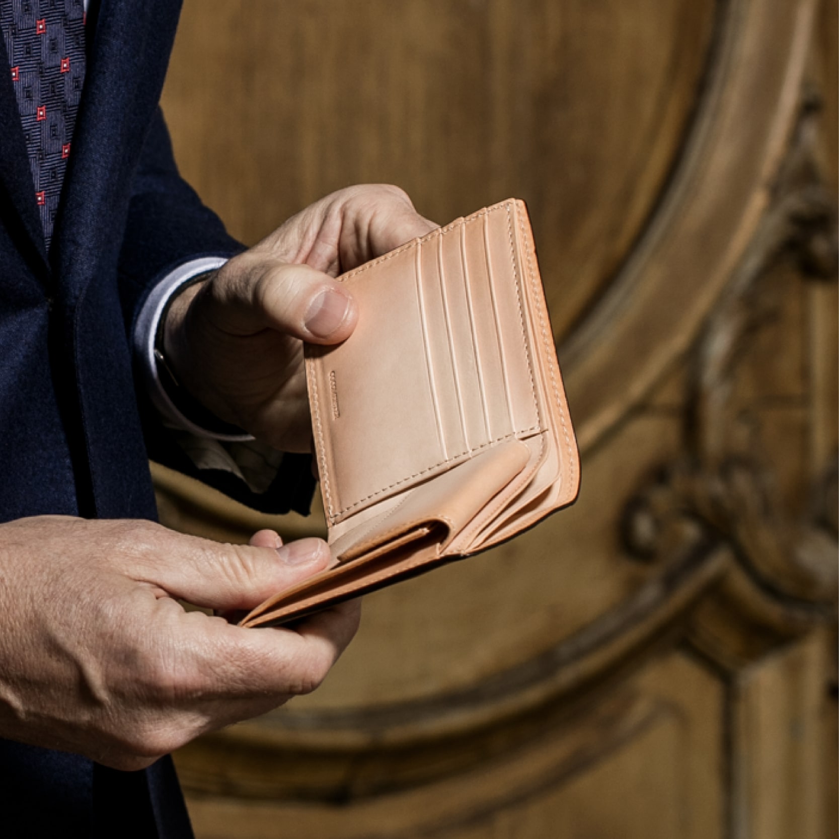 良い状態の原皮を使用し、バケッタ製法と呼ばれる千年伝統に裏打ちさわれたレシピ、製法により、天然皮革としての味わいと、ファッションとしての洗練さのバランスが取れています。経年変化も美しく、使い込むことで、より一層この革の魅力は引き出されます。