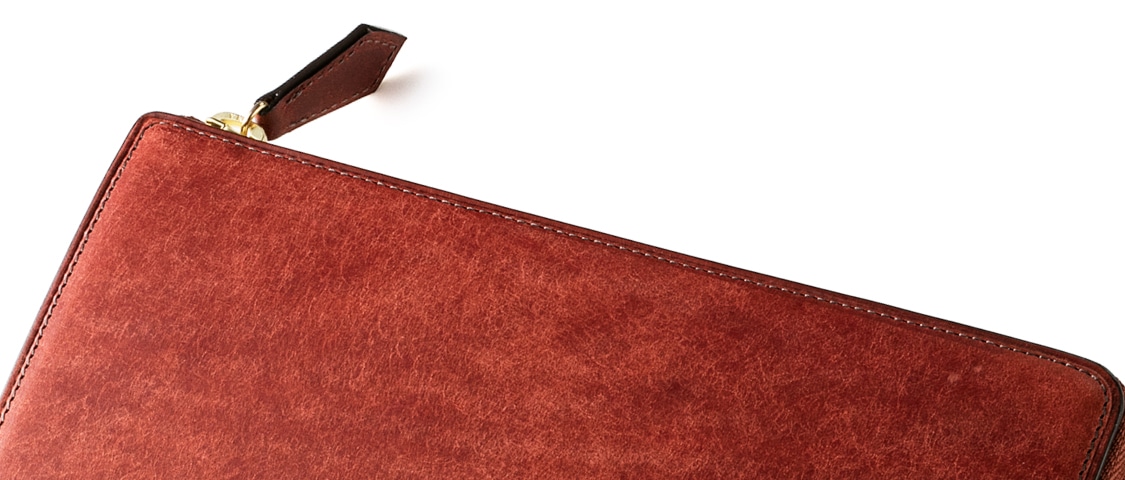 コードバンレザーなどの硬派なアイテムを仕立てる事が出来る、熟練度の高い職人が仕立てた“本物”を追求したレザーアイテムです。紳士物としての重厚感、経年変化しても上品な表情が魅力です。
