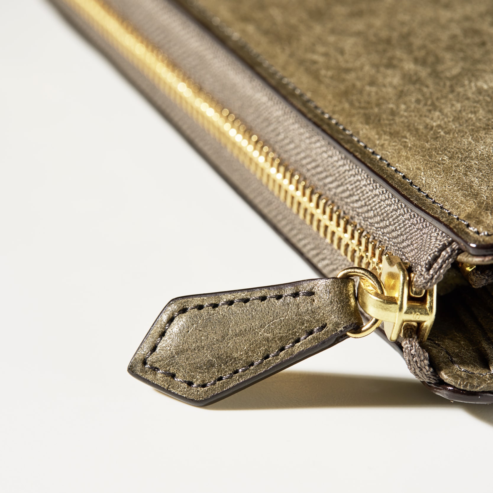 金の採掘がコンセプトのゴールドマイニングシリーズ。表面の起毛加工が特徴の最高級『プエブロ』レザーを使用し砂金が眠る土をイメージしました。圧倒的に洗練された経年変化が魅力で、紳士物一筋の職人が仕立てることで上品さと重厚感を兼ね備えました。L字型のラウンドジップ長財布のマグネティックドラムは、ファスナーがL字の為、開け閉めがしやすく使い勝手が良いです。またとても重厚感溢れるデザインに仕立てています。