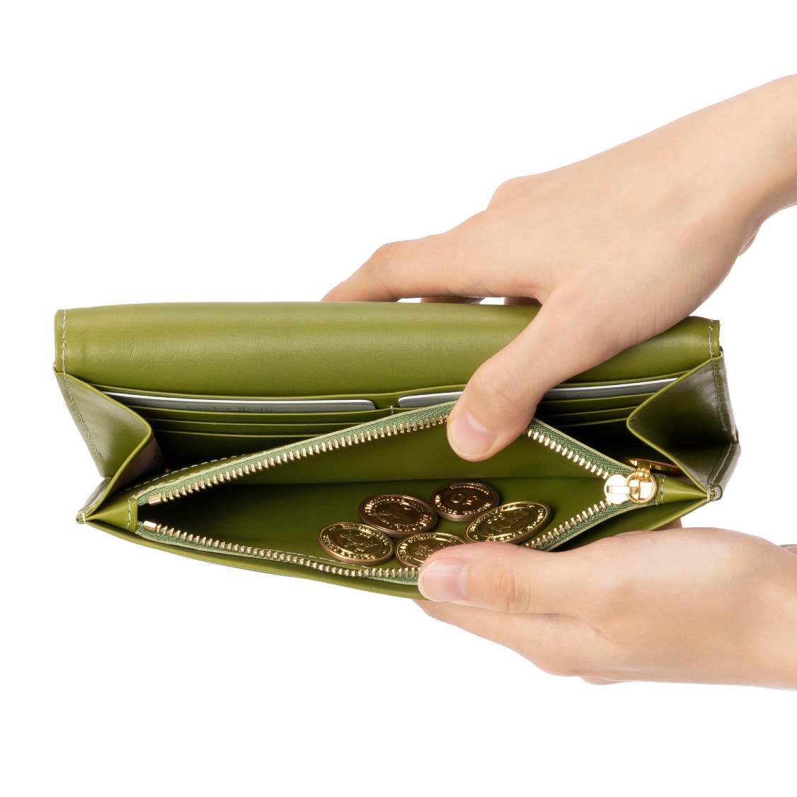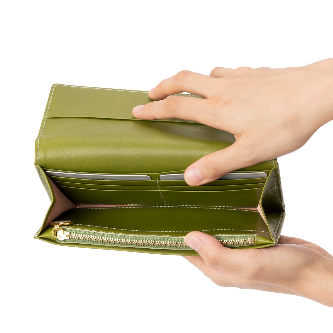 Detail 01両手で持っても大きなサイズの長財布です。キャッシュレスが流行りの時代ですが、大きなサイズは使いやすく、ストレスフリーです。