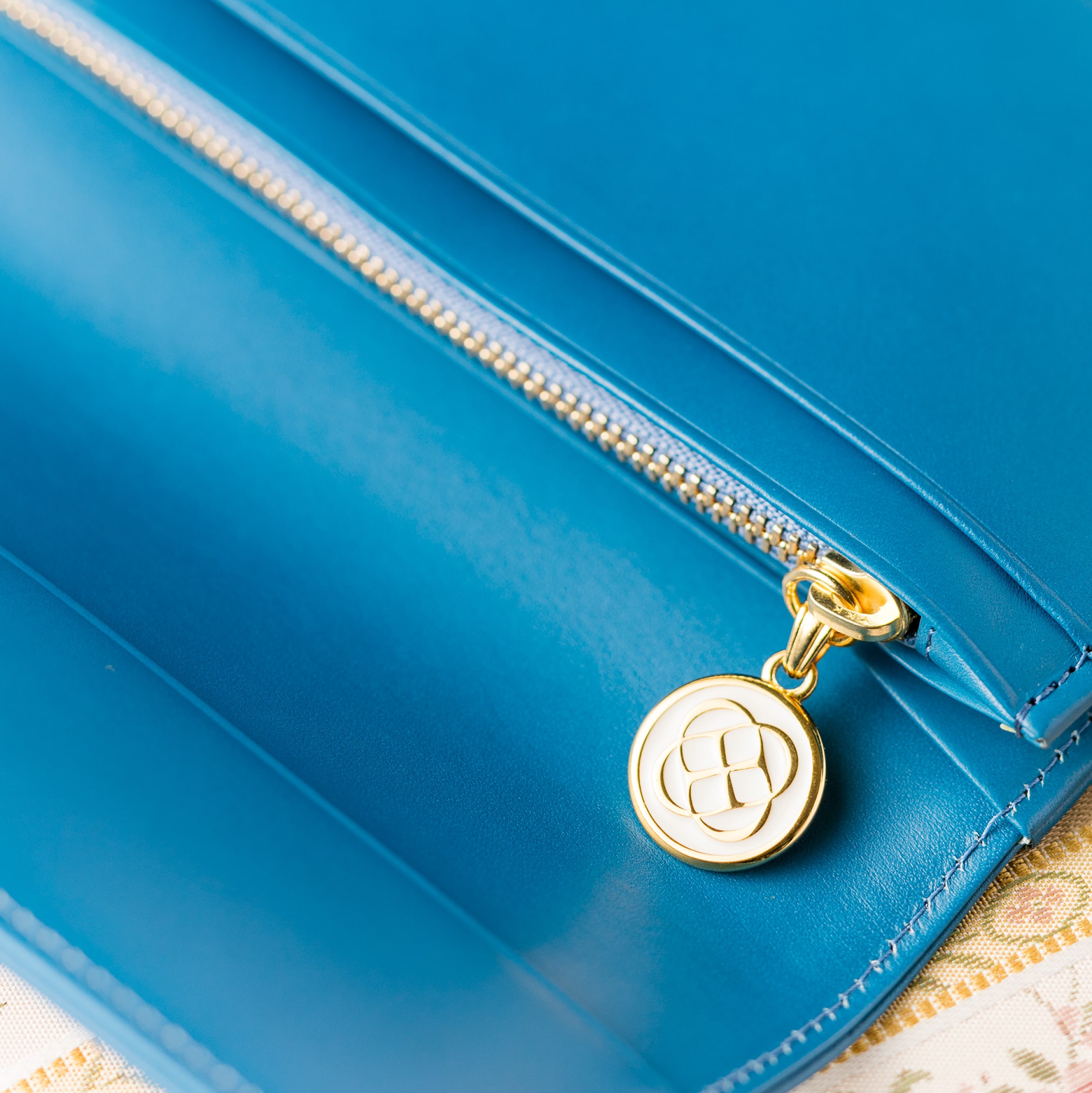 発色の良いイタリアンブルーが美しい色味です。天然皮革ではなかなか表現できない、イタリアの空色を感じさせてくれる色です。