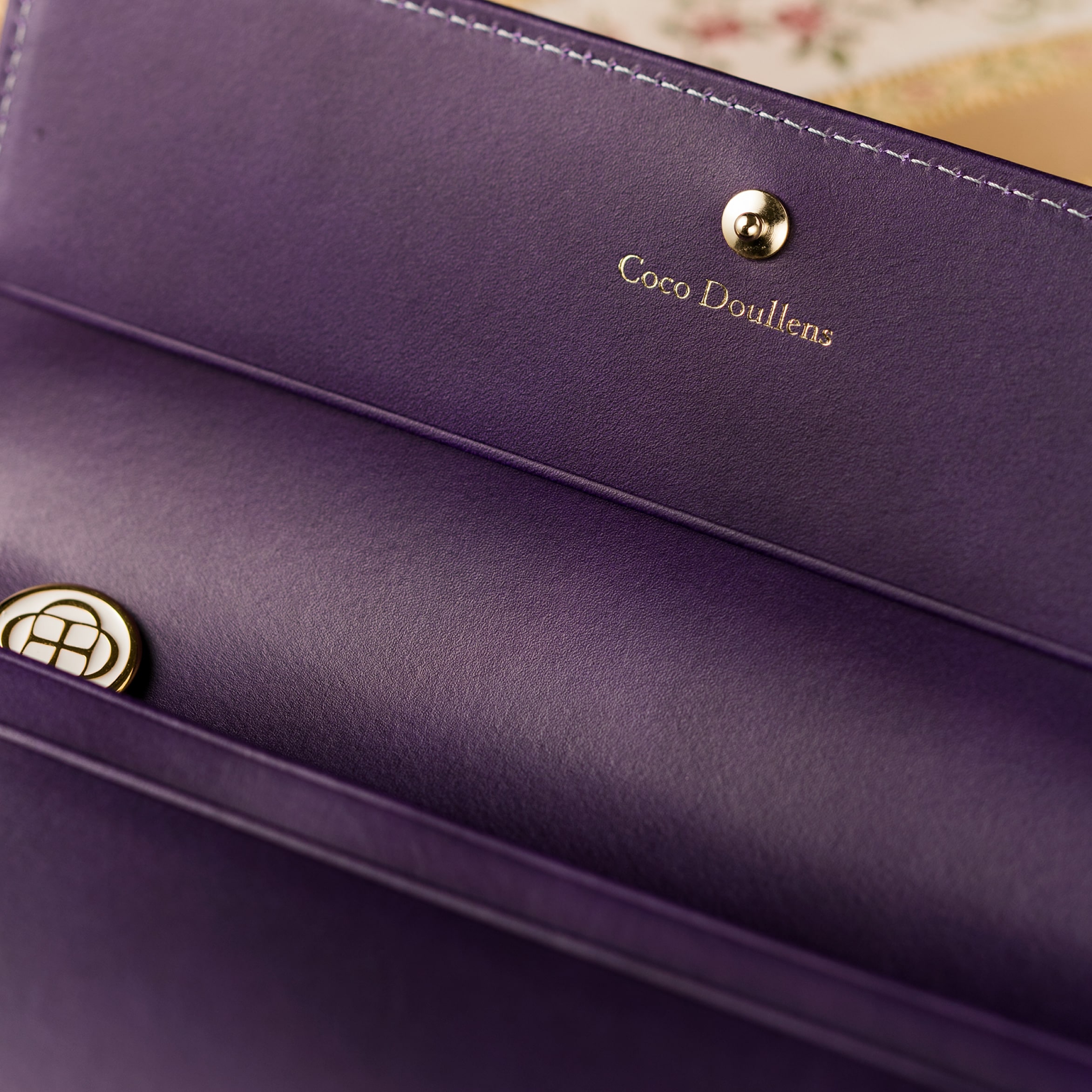 紫色が美しいヴィオーラカラーです。全体的に落ち着きながらも、天然皮革の柔らかく温かみのある風合いとのバランスがとても美しいです。