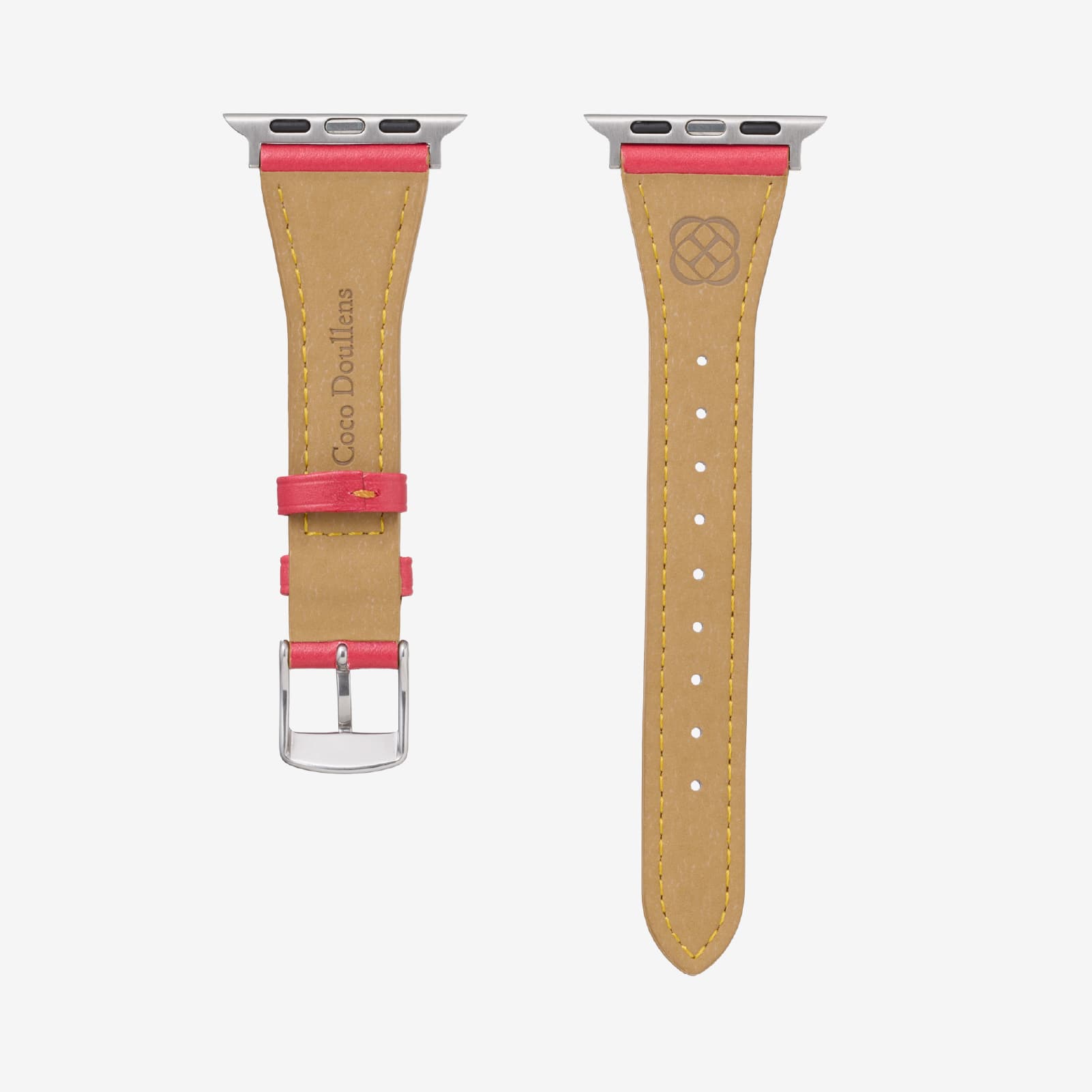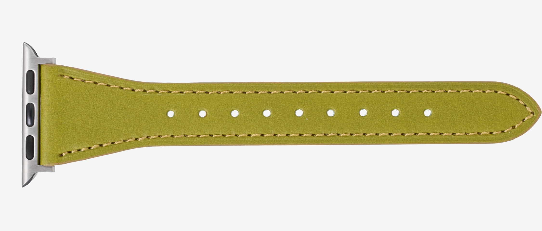 カルメリーナは、植物タンニンで丁寧に鞣されたイタリア産サンタクローチェレザーを使用した、発色の美しいレザーバンドです。やわらかな質感が手首になじみ、使うほど自然な艶が増していきます。裏面には肌当たりの良いテグラン素材を採用し、軽やかで普段使いしやすい仕上がりに。Apple Watch のすっきりしたフォルムに、やさしい色味をそっと添えてくれます。