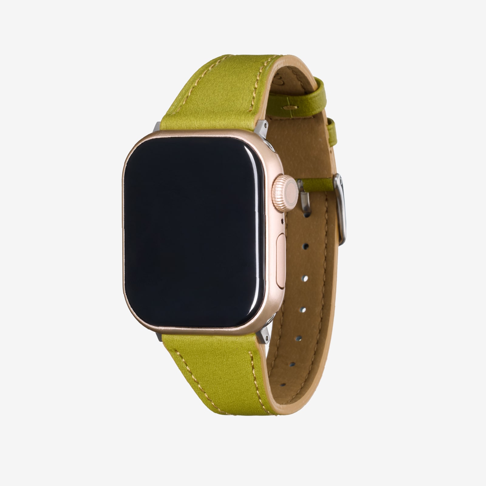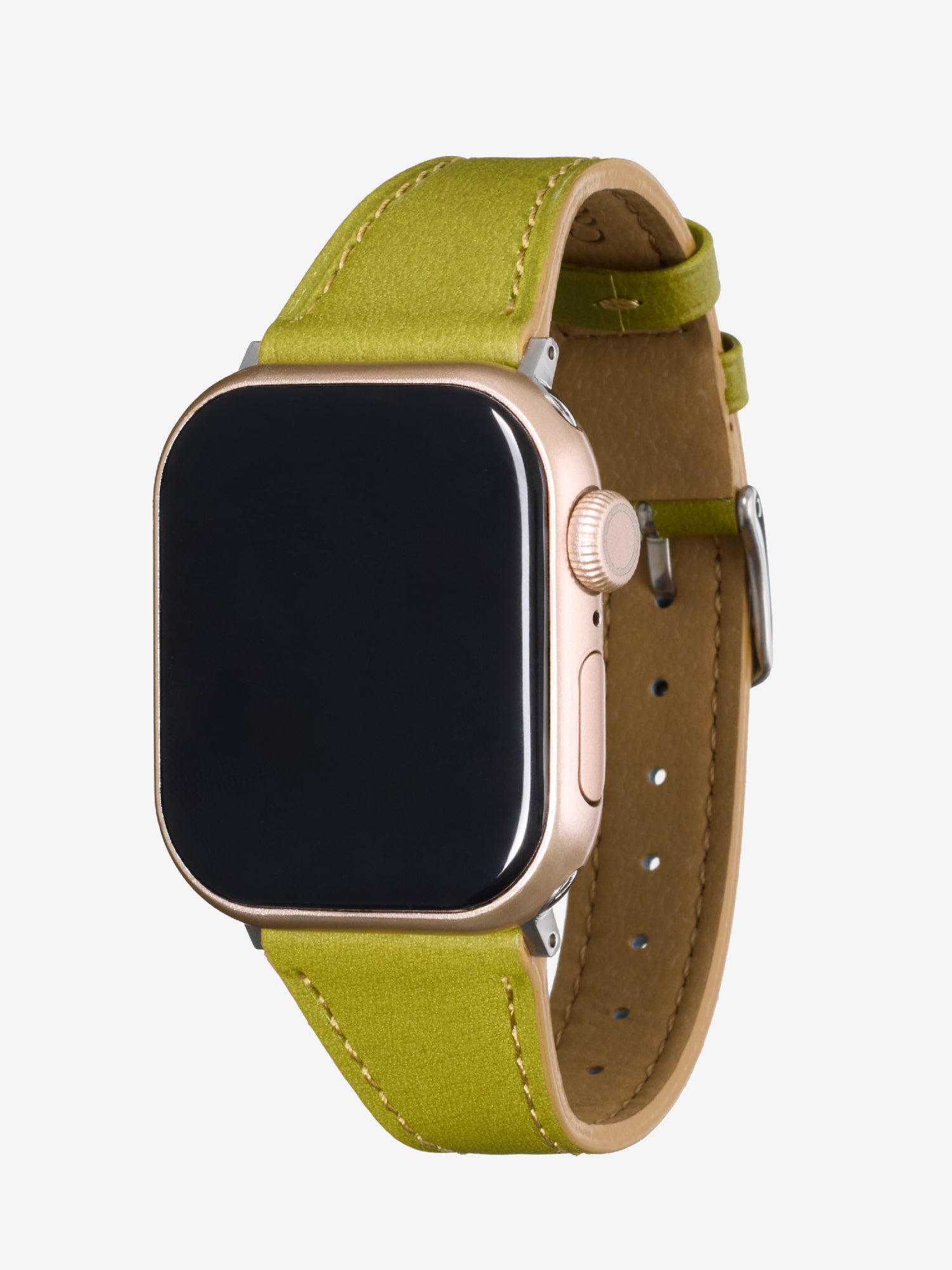 イタリアの庭園をイメージして作られたカルメリーナシリーズ。色のやさしさと革の質感を楽しめる Apple Watch バンドで、日常の装いに自然と寄り添う一本です。