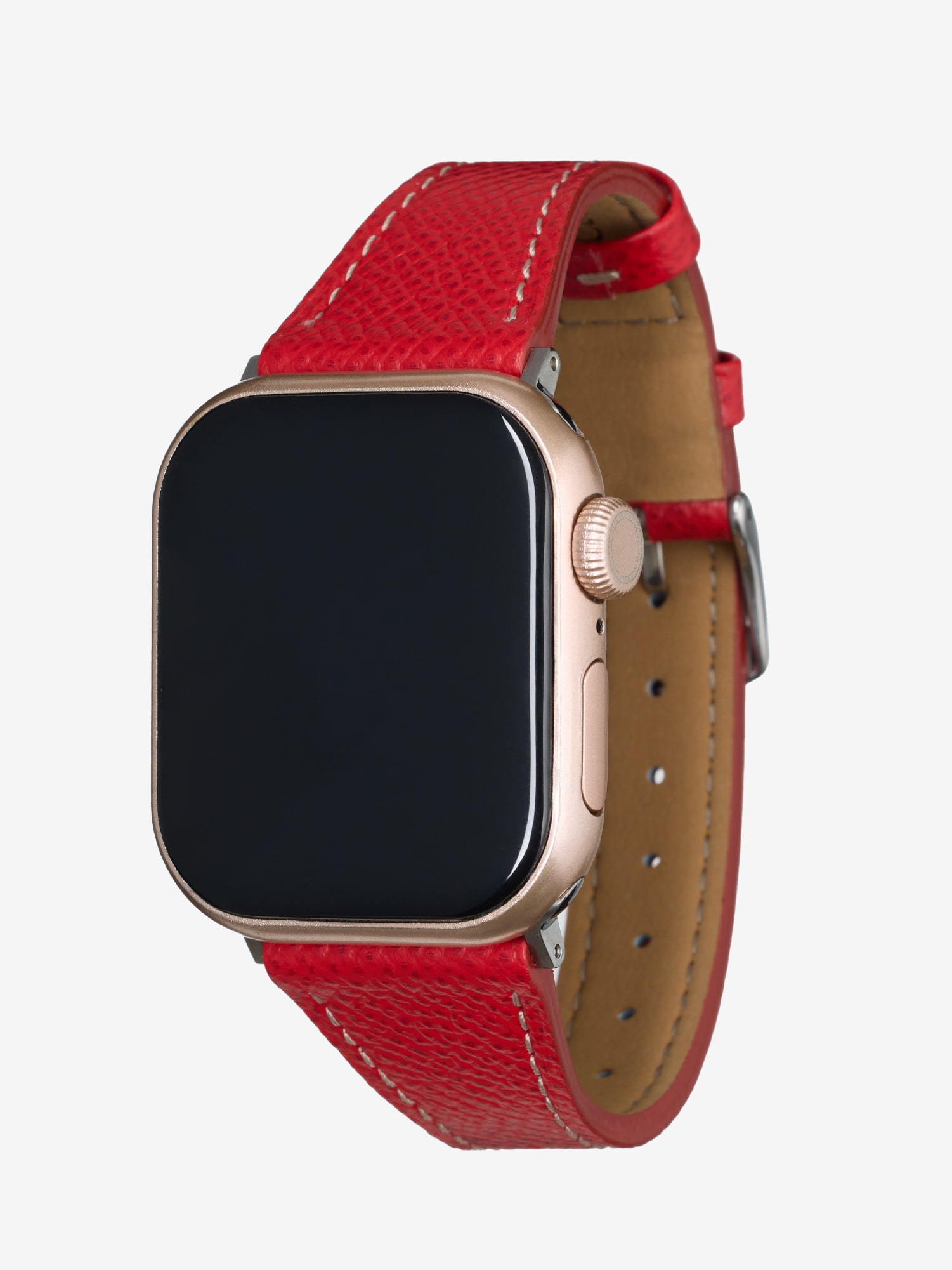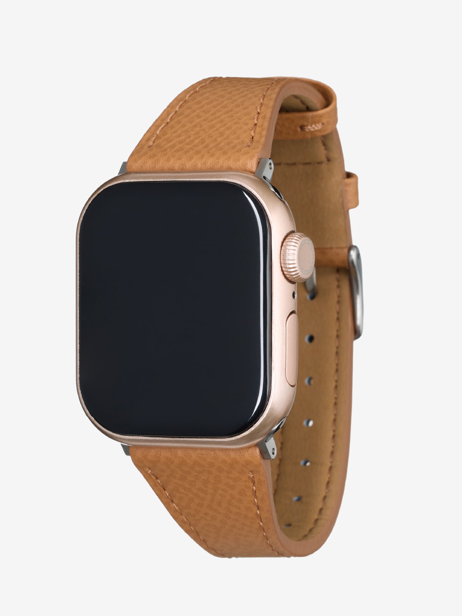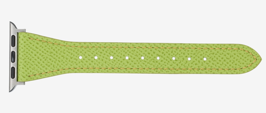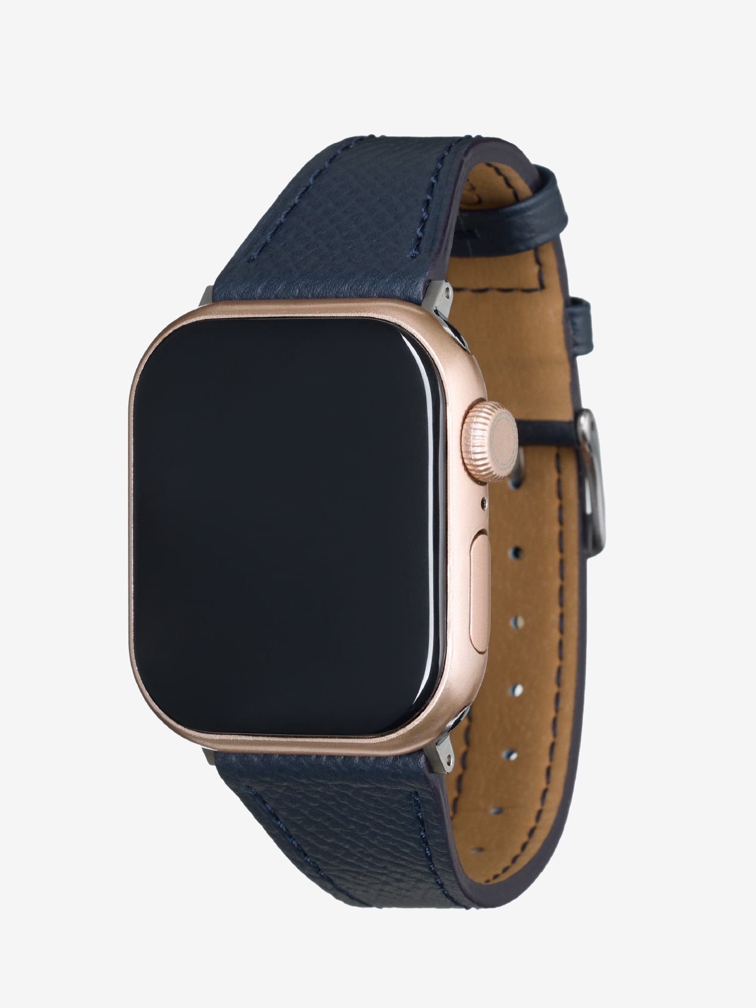 その耐久性と美観のバランスから、世界中の高級ブランドでもバッグ・財布・革小物に広く採用されており、毎日使う Apple Watch バンドにも最適な素材と言えます。
