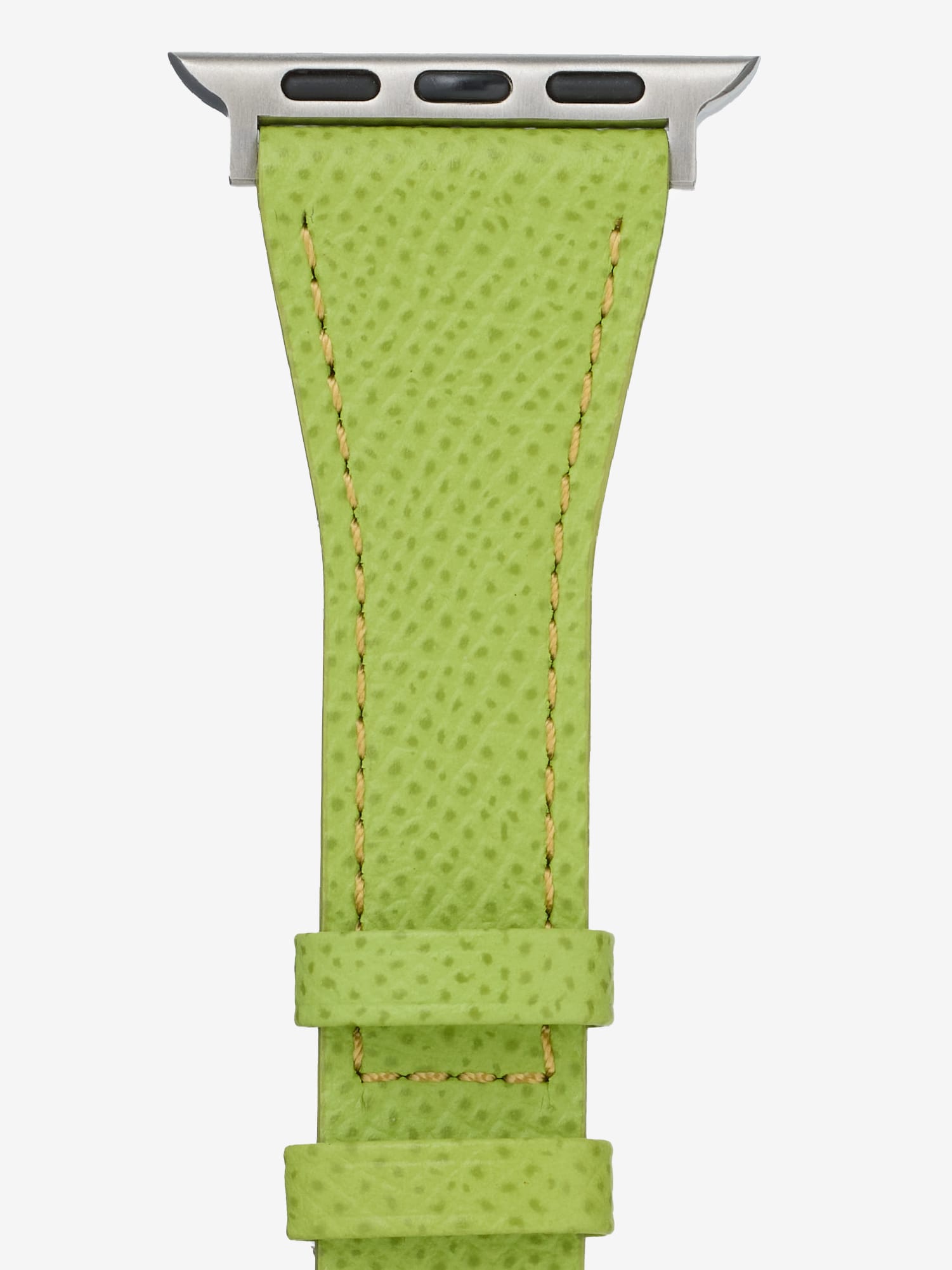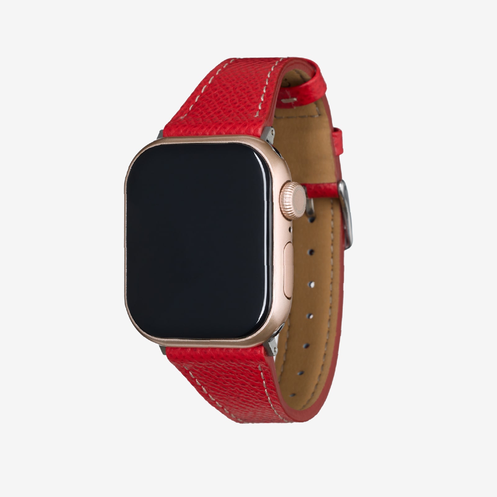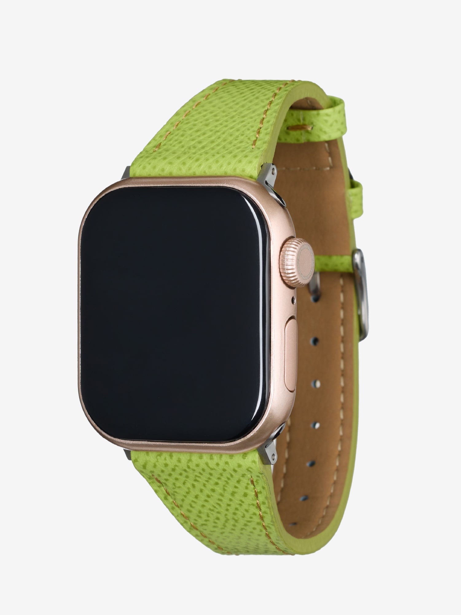 その耐久性と美観のバランスから、世界中の高級ブランドでもバッグ・財布・革小物に広く採用されており、毎日使う Apple Watch バンドにも最適な素材と言えます。