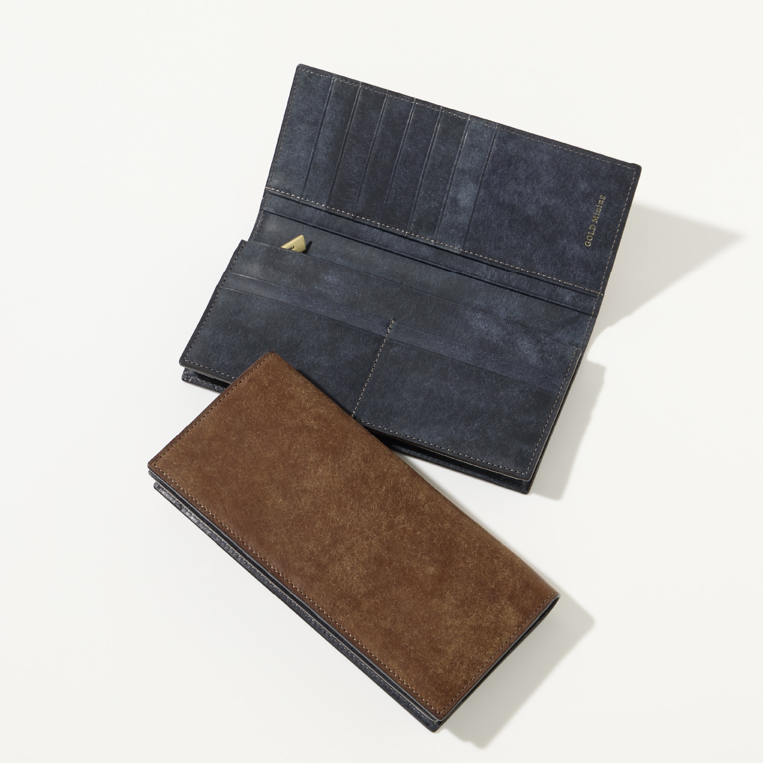 表面の起毛加工が特徴の最高級『プエブロ』レザーのエイジングを楽しむ、クラシカルタイプの長財布。