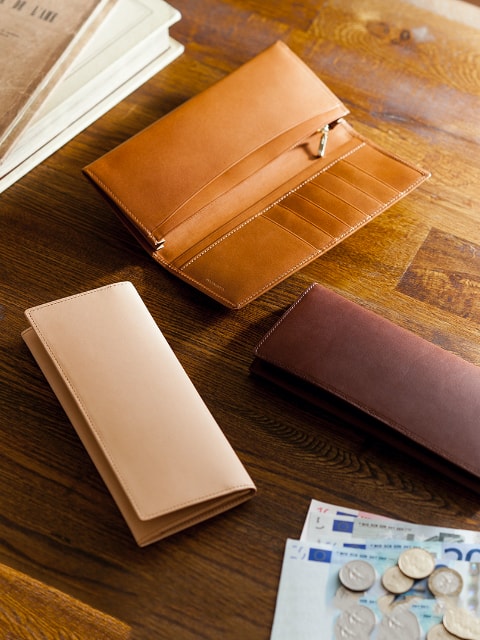ラウンドウォレットイタリアの庭園インスピレーション、オーガニックレザーの長財布。