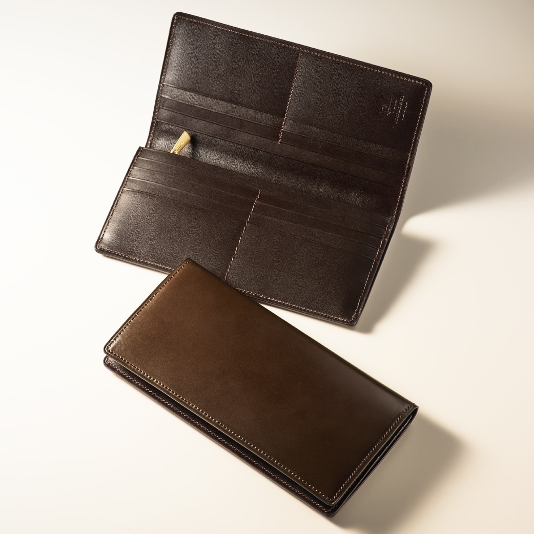 英国馬具革のブライドルレザーとイタリアンレザーの通しマチ型長財布。