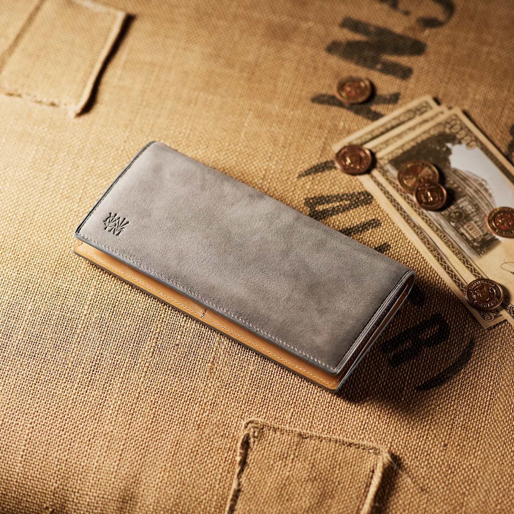 古き良き時代の革製品をコンセプトにしたグッドオールドコレクション。極上ヌバックの圧倒的な上質感が魅力です。外装にはスペインヌバックを採用し、内装には希少皮革オークバークを採用しました。最高級の素材を惜しみなく使用、熟練した財布職人が仕立てます。シンプルにこだわり抜いた逸品。その中でも、特別こだわり抜いたのは“質感”です。高級タオル生地の様な上質な質感のヌバックが、心地よく手に馴染みます。内装オークバークレザーは、硬さもありながら、しなやかで上品な質感です。クリームなどでメンテナンスすることで、経年変化も早めに進み、優しい風合いから、荒々しいワイルドな表情へ変化します。