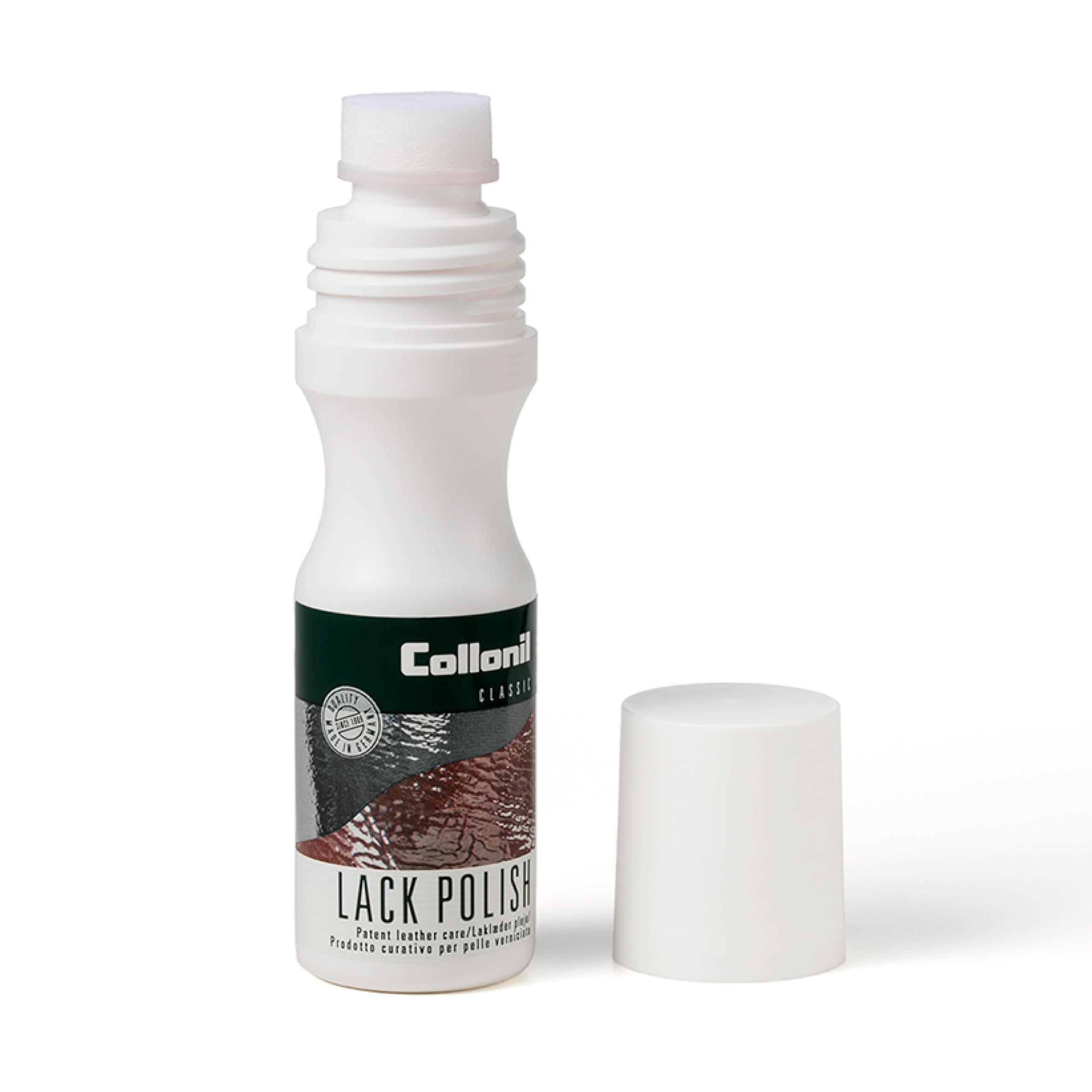 ドイツ産の革製品メンテナンスブランドであるコロニルのエナメル艶出しラックポリッシュです。エナメル皮革専用の艶出しローション、美しい光沢を維持し、汚れを付きにくくします。革の柔軟性を維効果もあり、ひび割れやベタ付きを防ぎます。
